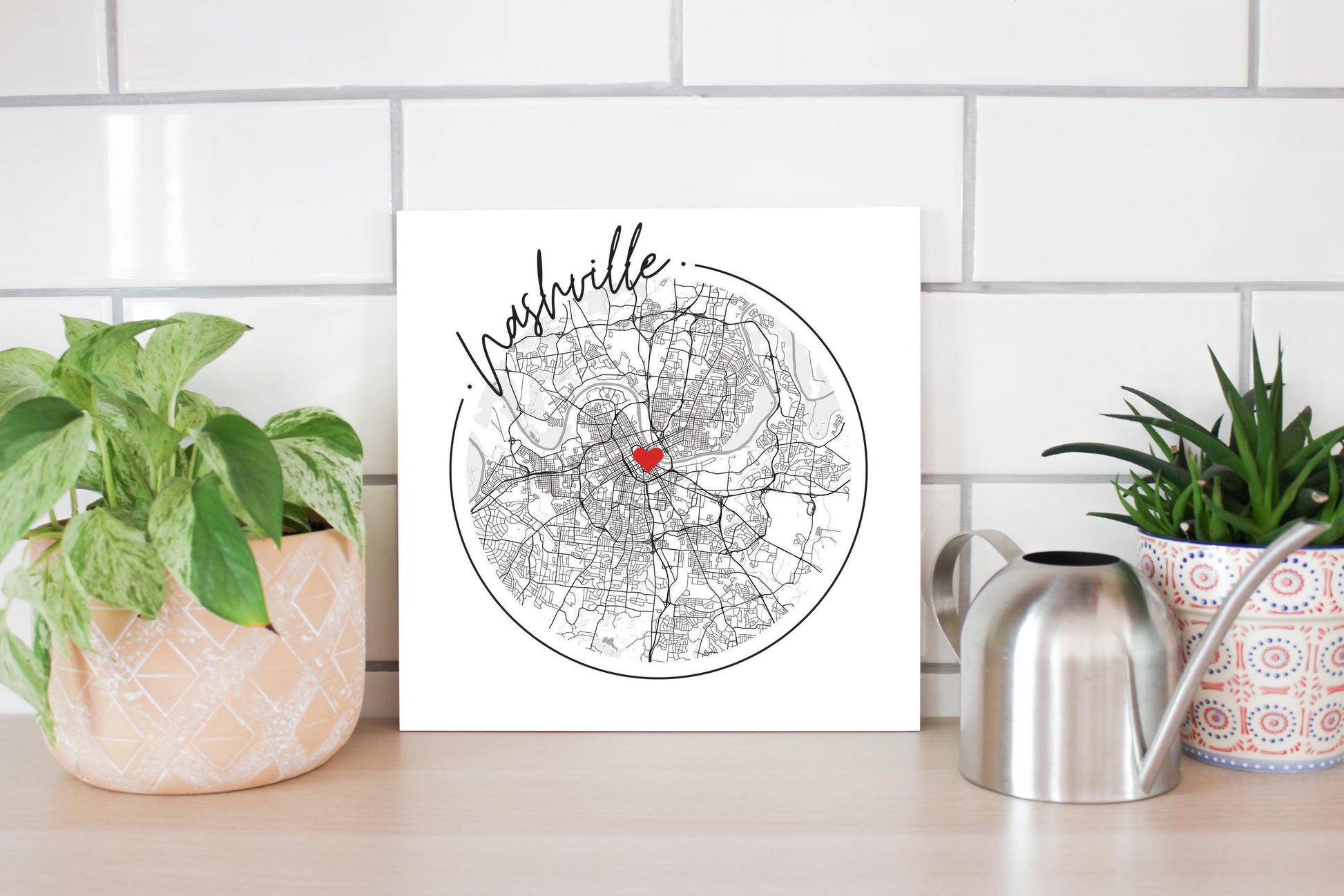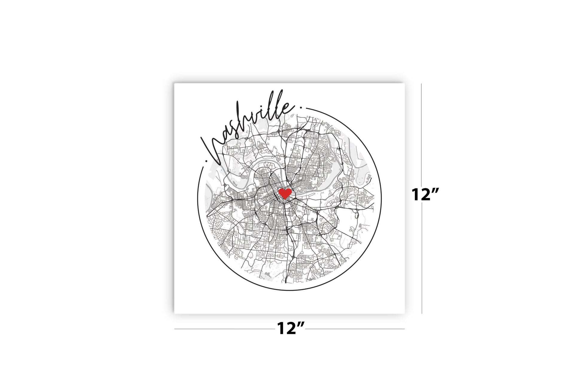 Minimalist B&W Tennessee Nashville Circle Map Heart | Wood Sign | Eaches | Min 2
