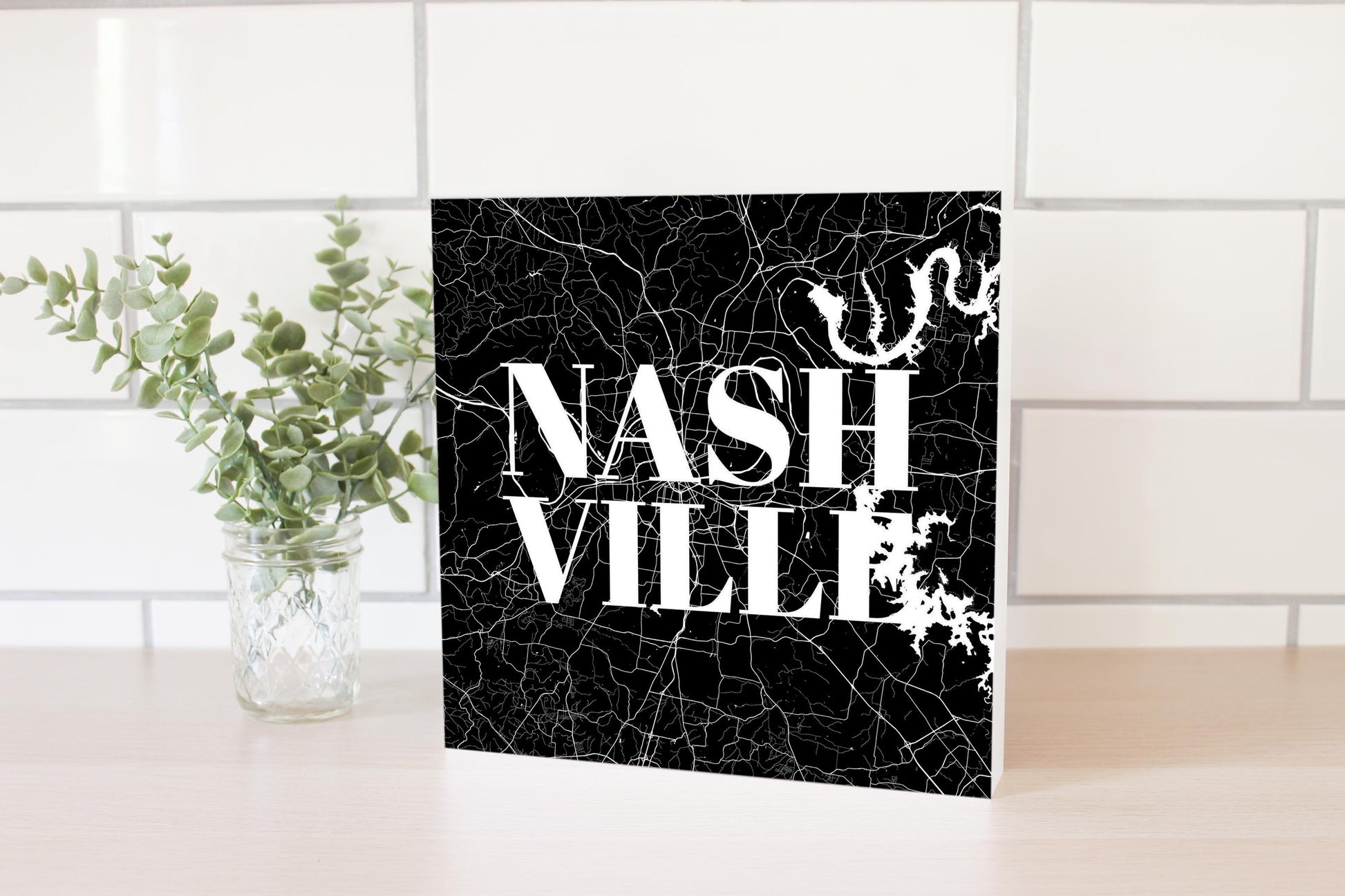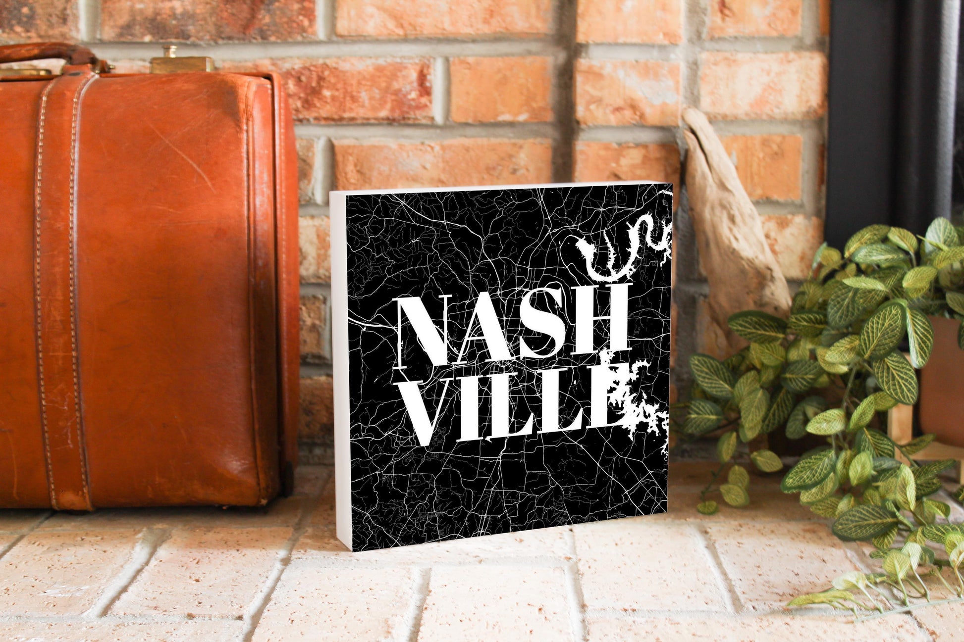 Minimalist B&W Tennessee Nashville Map | Wood Block | Eaches | Min 2