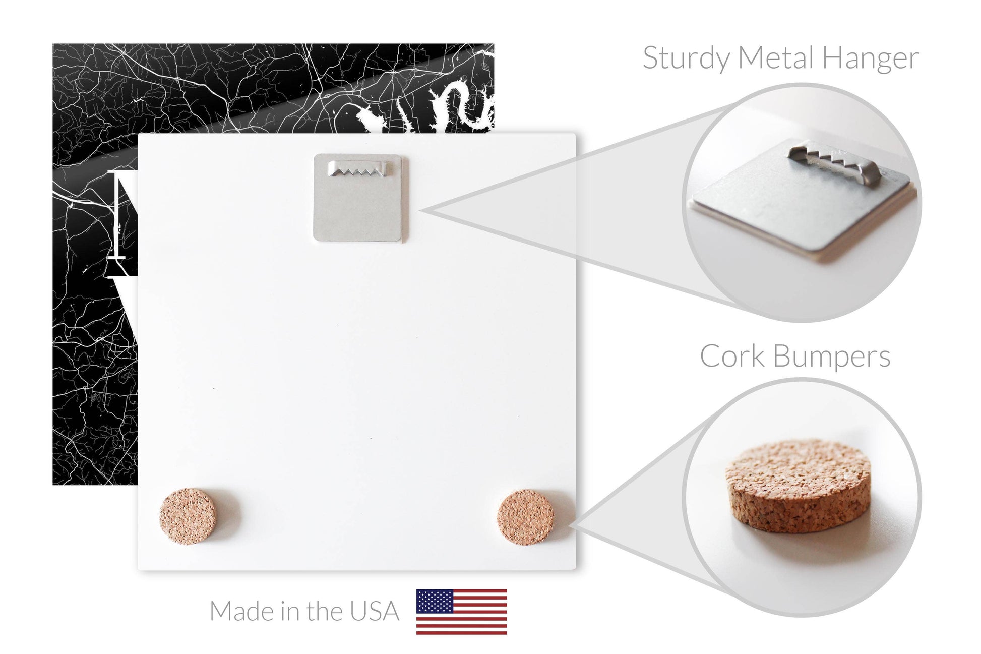 Crafted from high-quality tempered glass, this 8x8 glass plaque features a striking black and white map design, beautifully rendered using eco-friendly, water-based inks. The result is a piece that radiates sophistication and modernity, making it an eye-catching addition to any space. Installation is effortless with the included template, mounting hardware, and a bubble level—everything you need for a seamless setup.