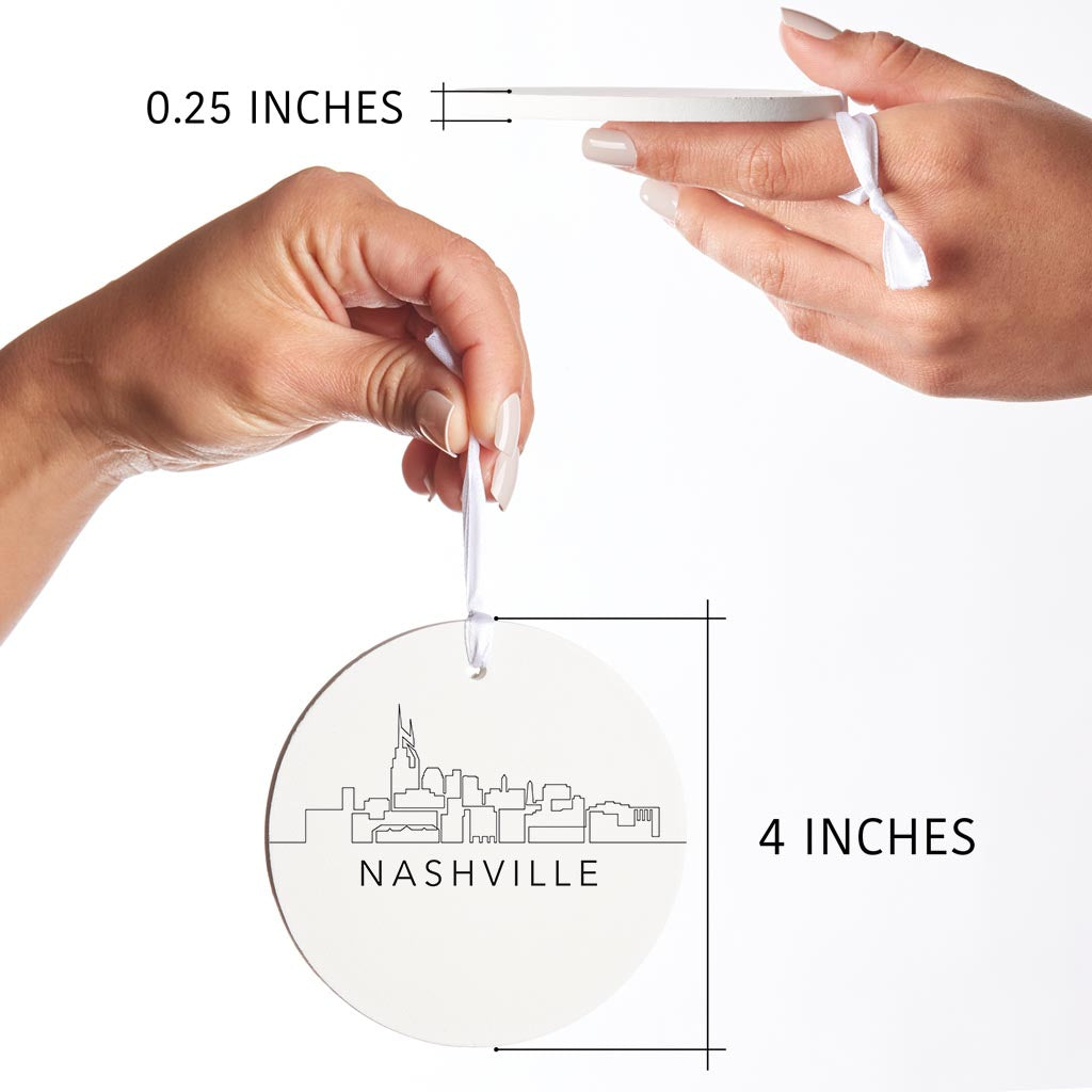 Minimalist B&W Tennessee Nashville Skyline| Wood Ornament | Eaches | Min 6