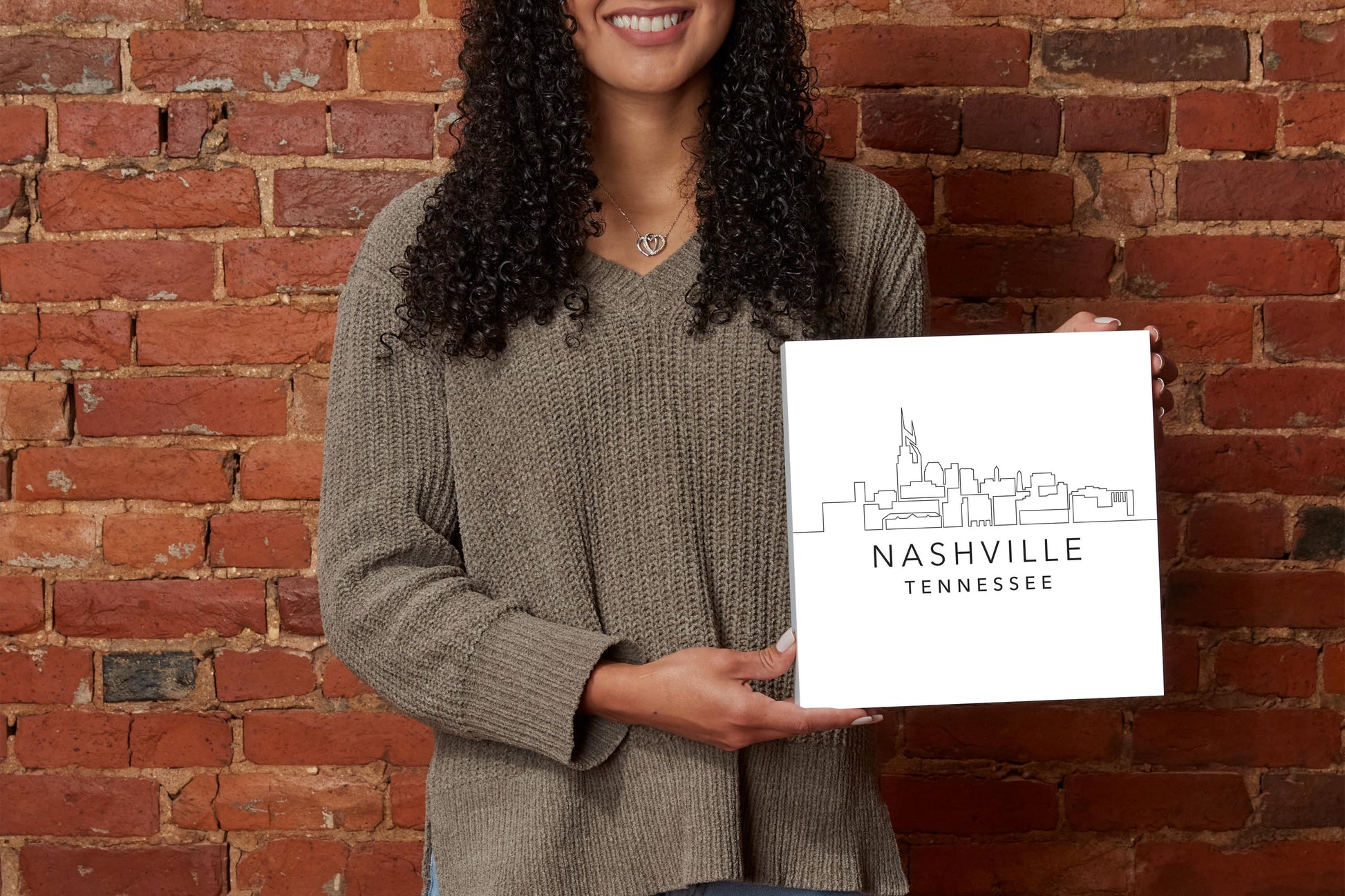 Minimalist B&W Tennessee Nashville Skyline | Wood Block | Eaches | Min 2