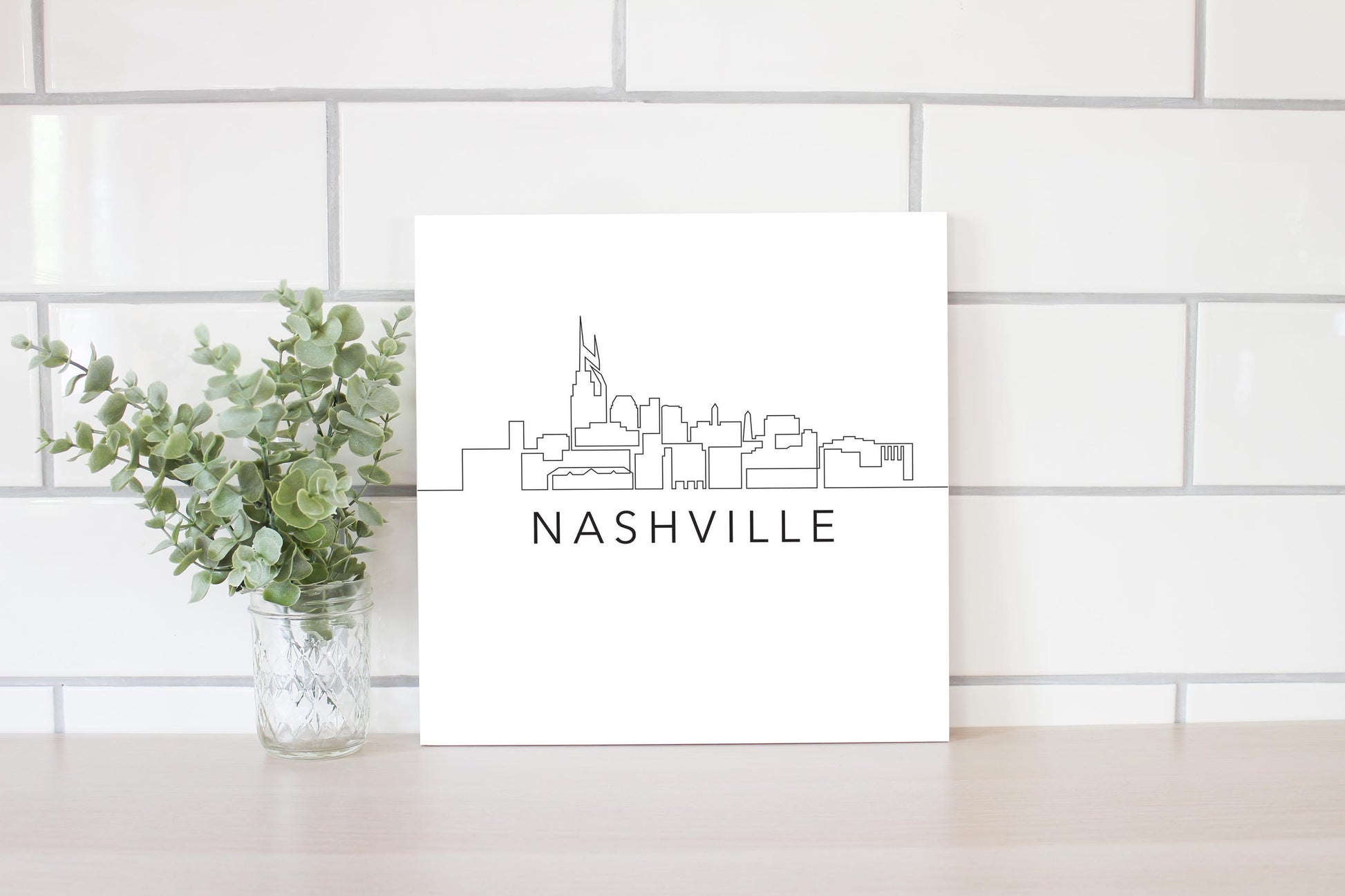 Minimalist B&W Tennessee Nashville Skyline | Wood Sign | Eaches | Min 2