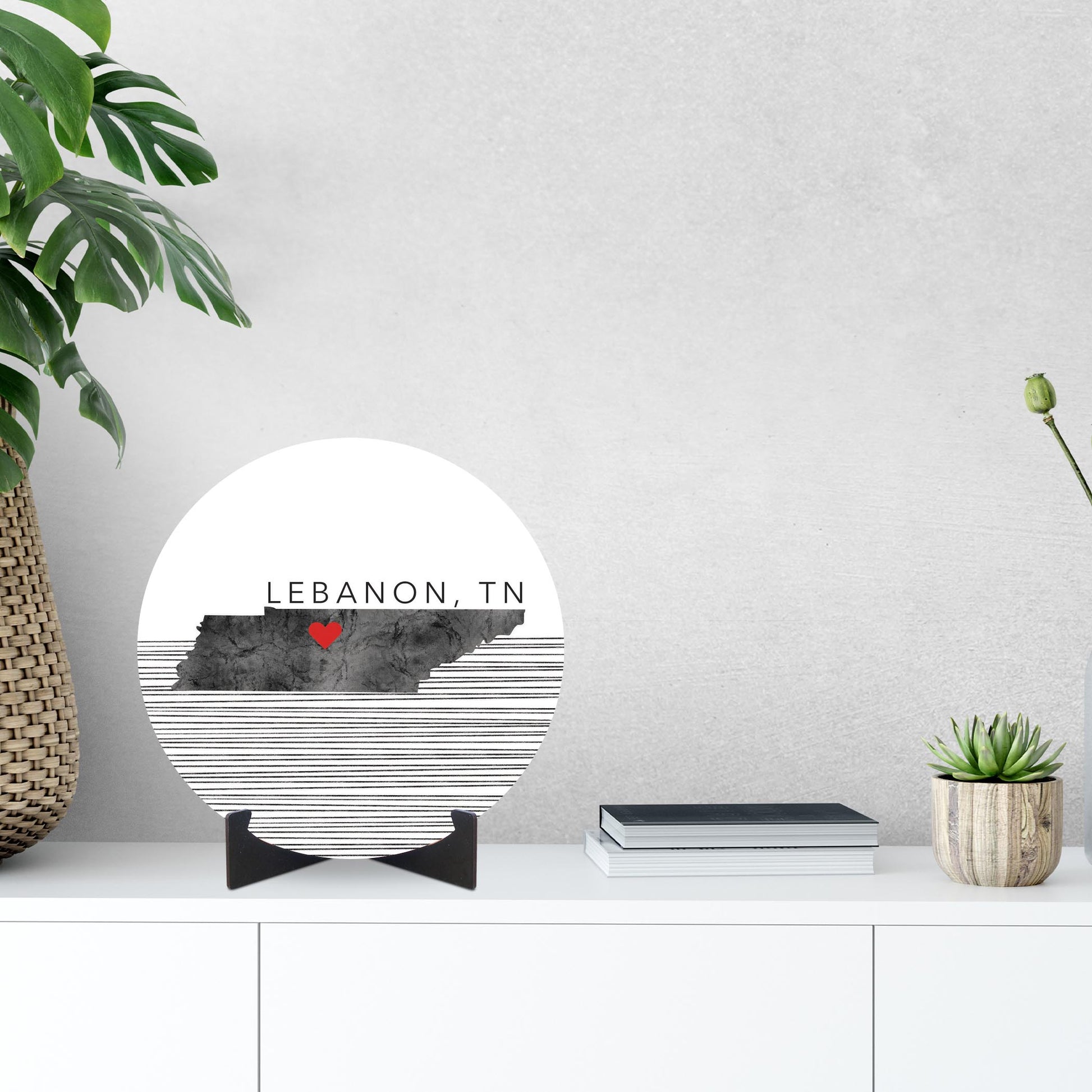 Minimalist B&W Tennessee State Lebanon Heart | Wood Sign | Eaches | Min 1