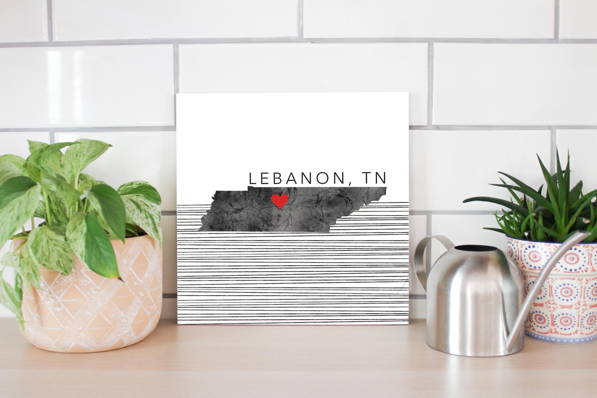 Minimalist B&W Tennessee State Lebanon Heart | Wood Sign | Eaches | Min 2