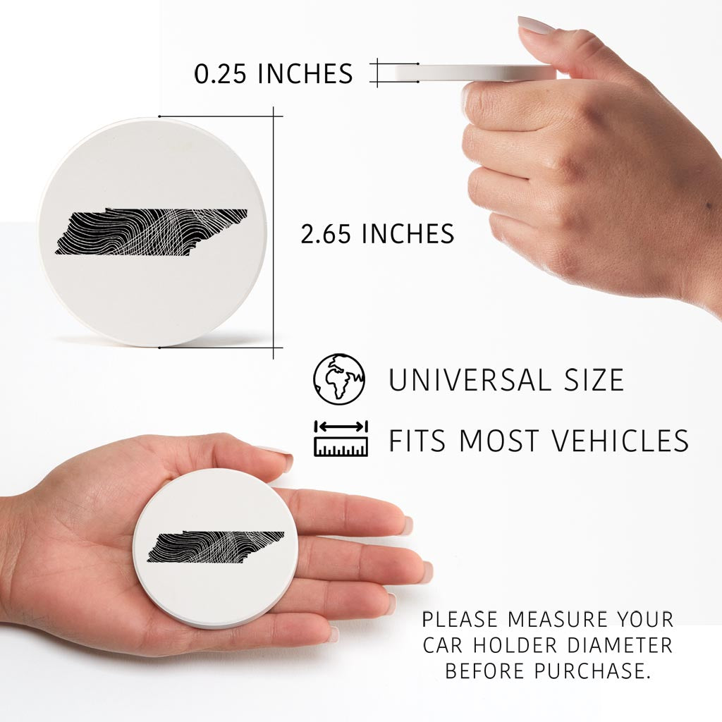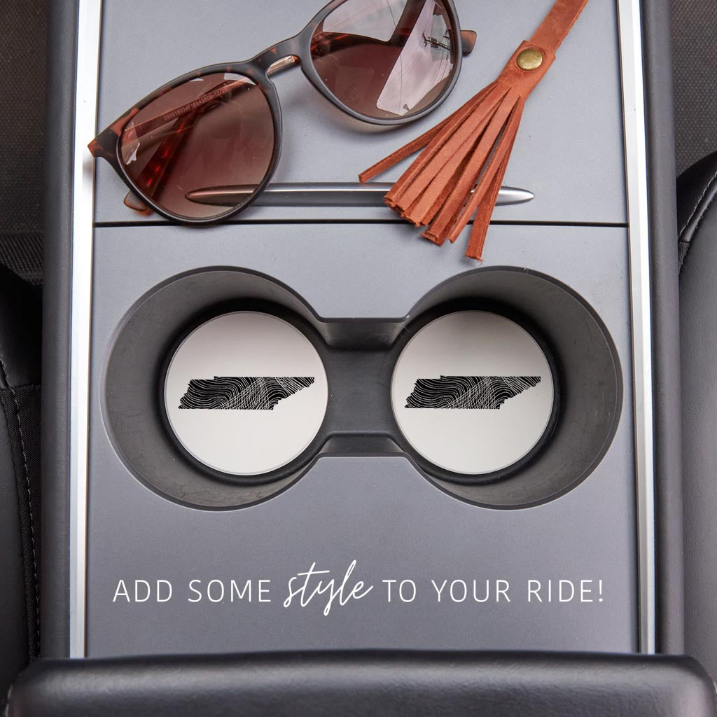 Minimalist B&W Tennessee State Shape| Absorbent Car Coasters | Set of 2 | Min 4
