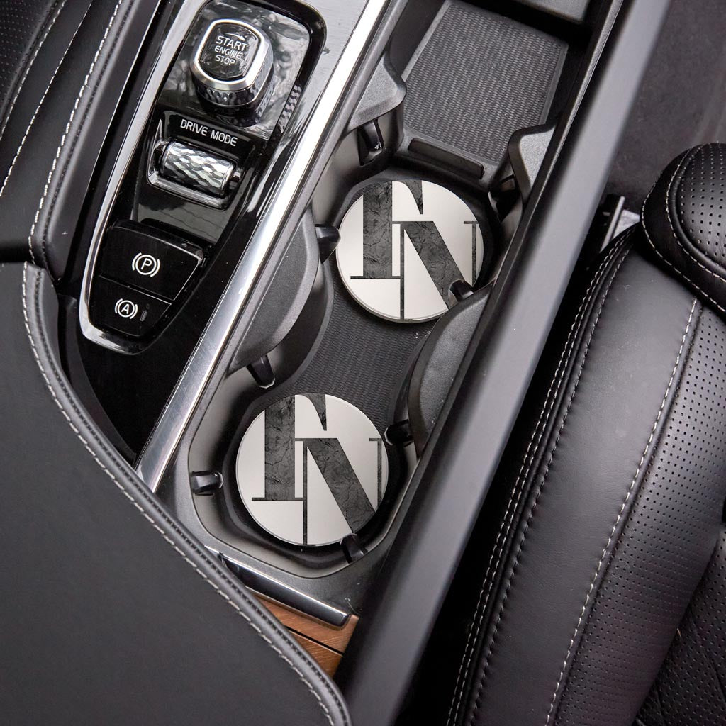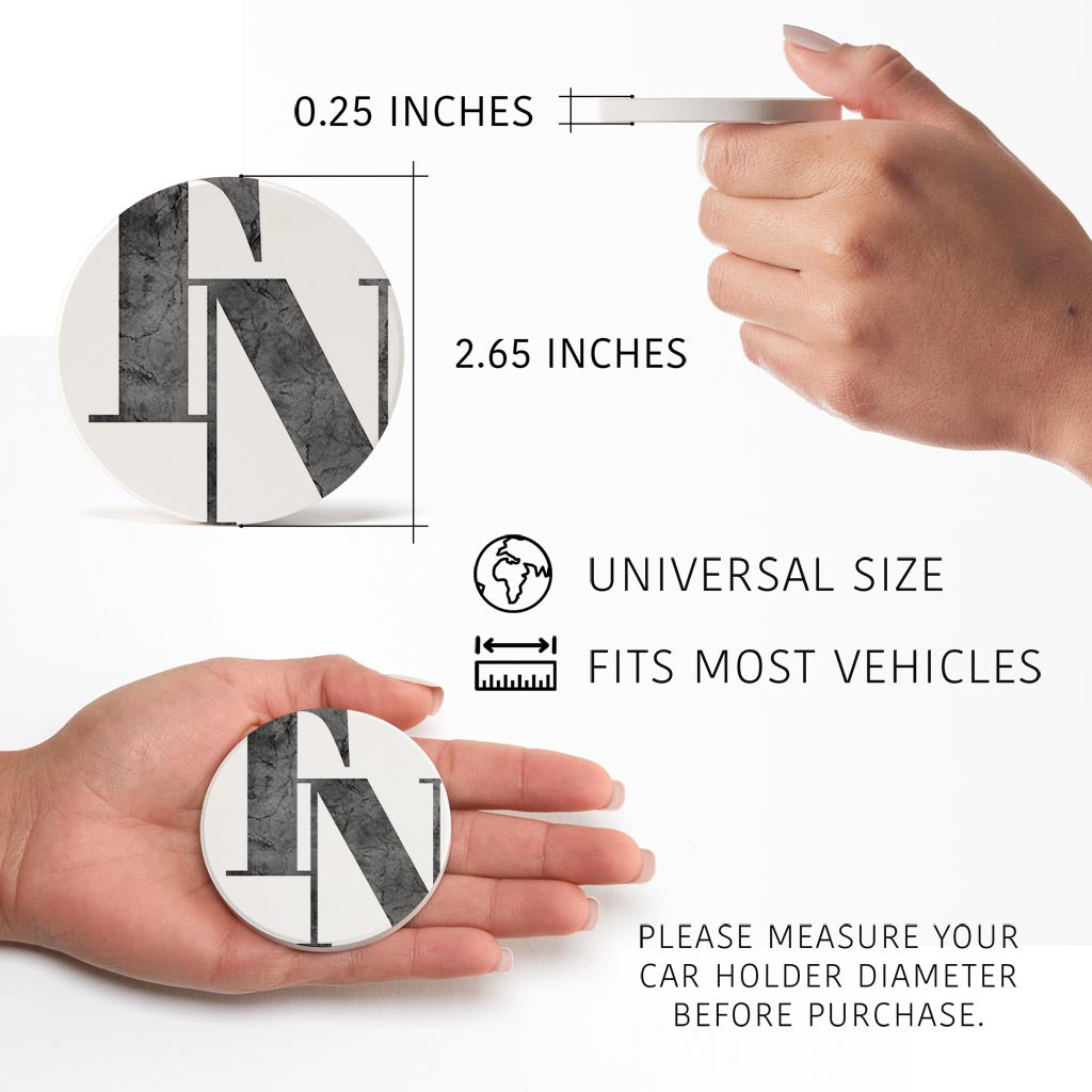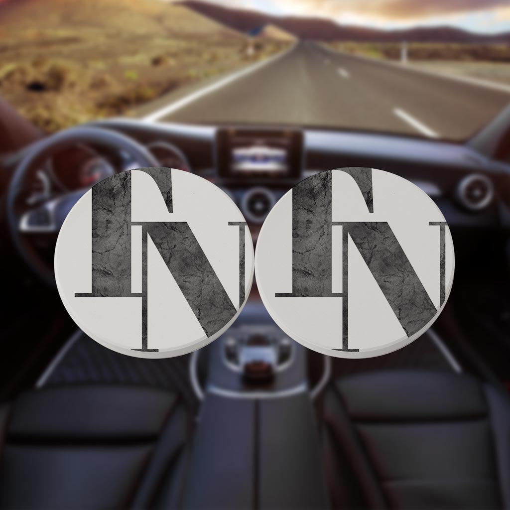 Minimalist B&W Tennessee White Initials | Absorbent Car Coasters | Set of 2 | Min 4