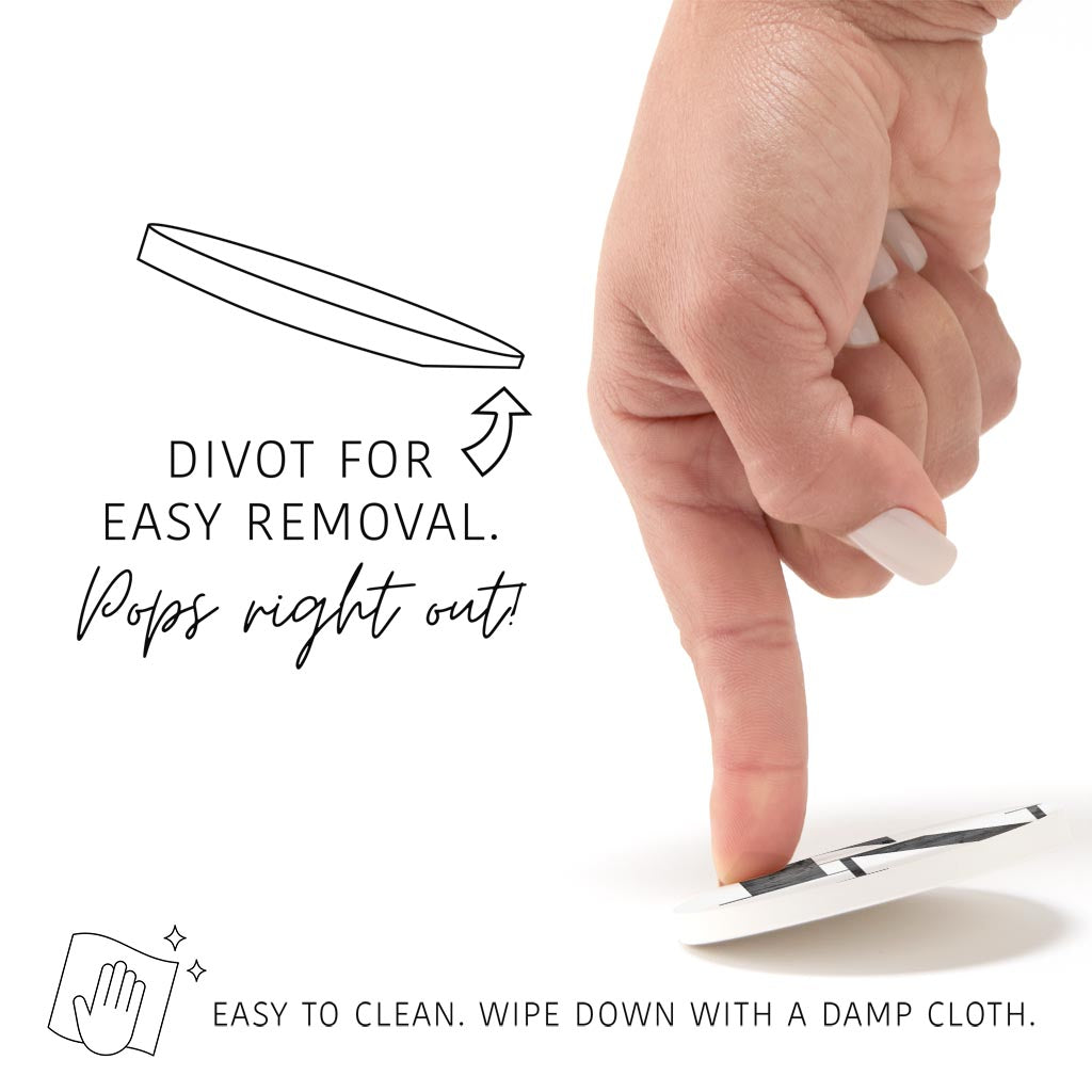 Car coasters are that little accessory that you didn’t know you needed but now consider an essential. Your cupholders are protected and kept clean by absorbing drips from your morning coffee to sticky juice boxes. The strategic divot edge allows you to easily pop it out and wipe clean. No more grime stuck in the cupholder abyss. While car coasters are wonderfully utilitarian, they also inject a little personality and design into the space you spend so much time in. Order a few to mix and match to your mood, season, or newest trends. We love when function and design coincide!