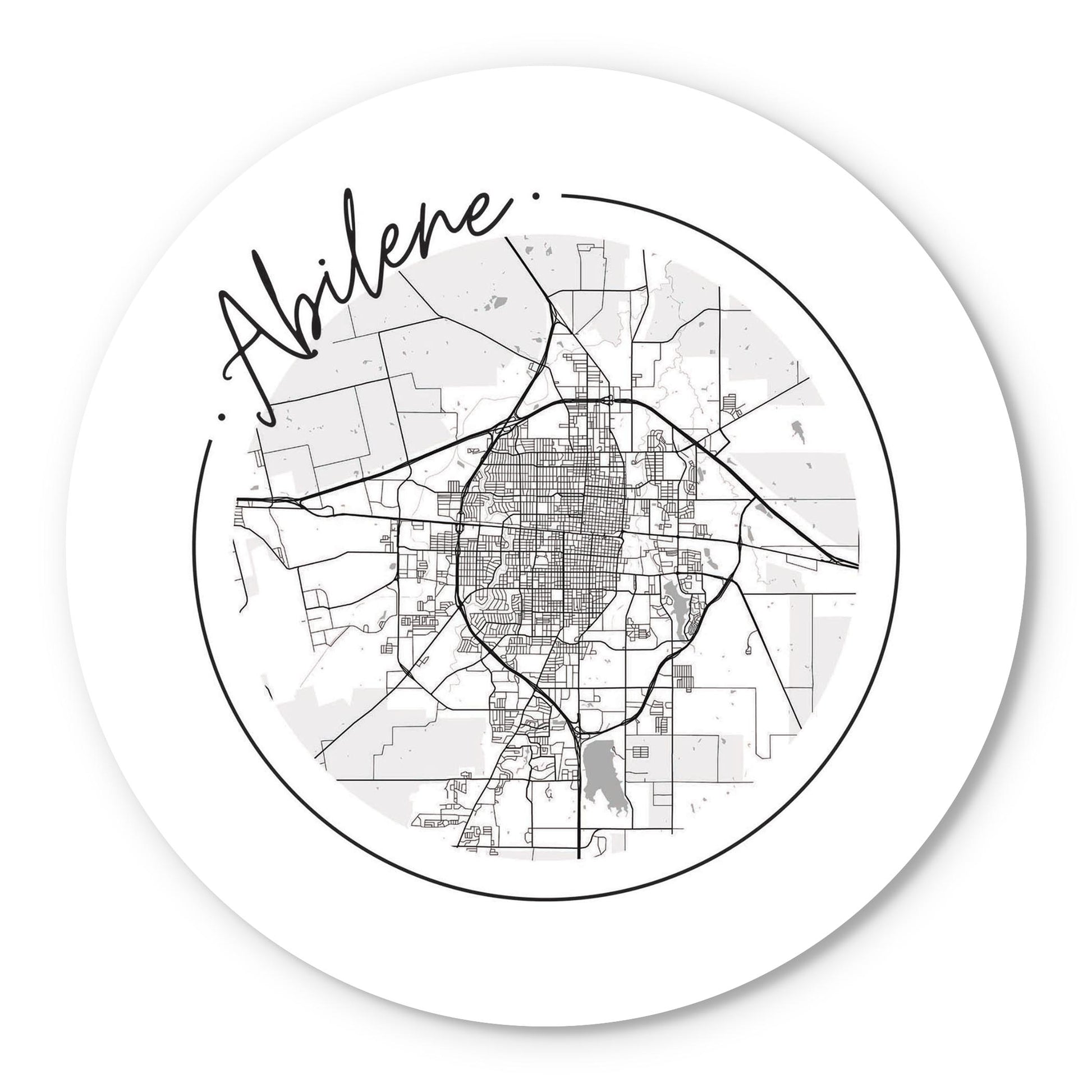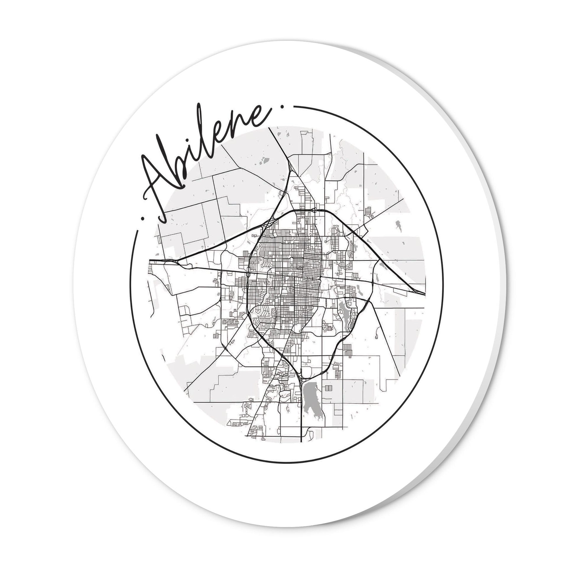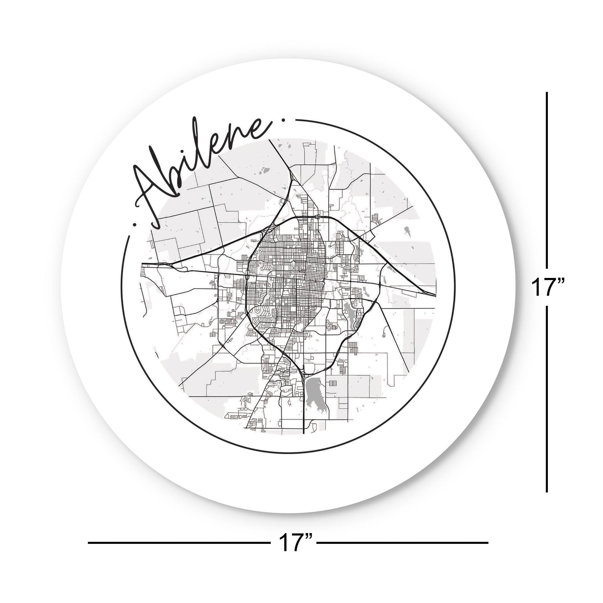 Minimalist B&W Texas Abilene Circle Map | Wood Sign | Eaches | Min 1