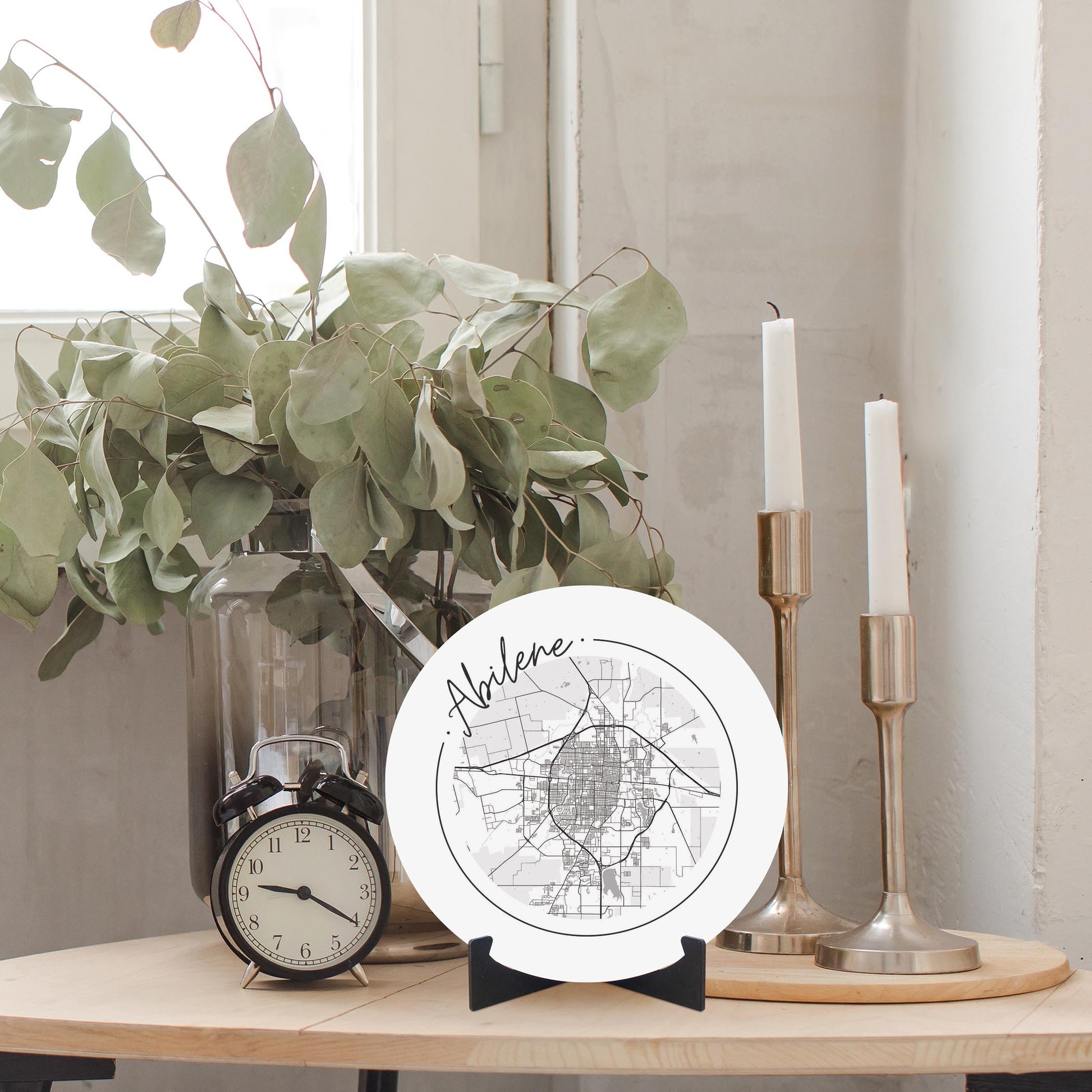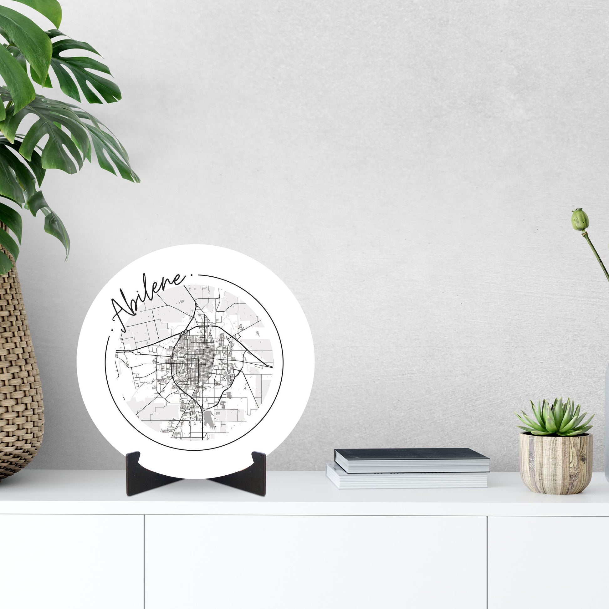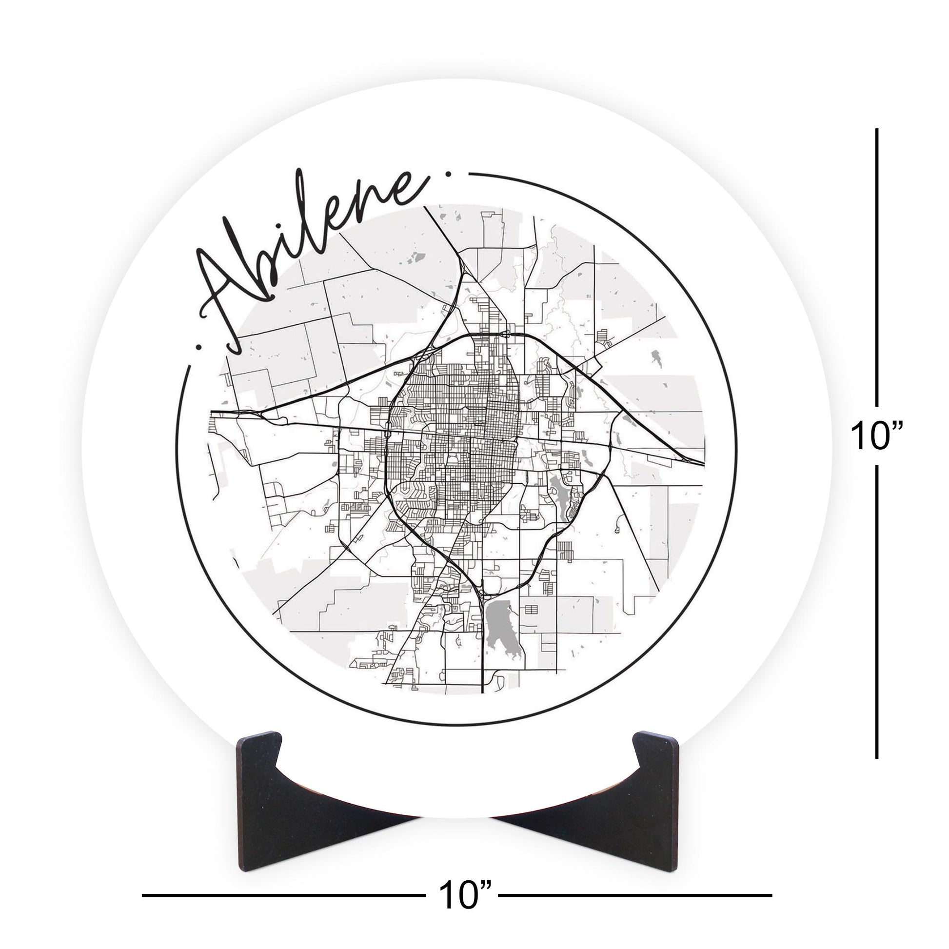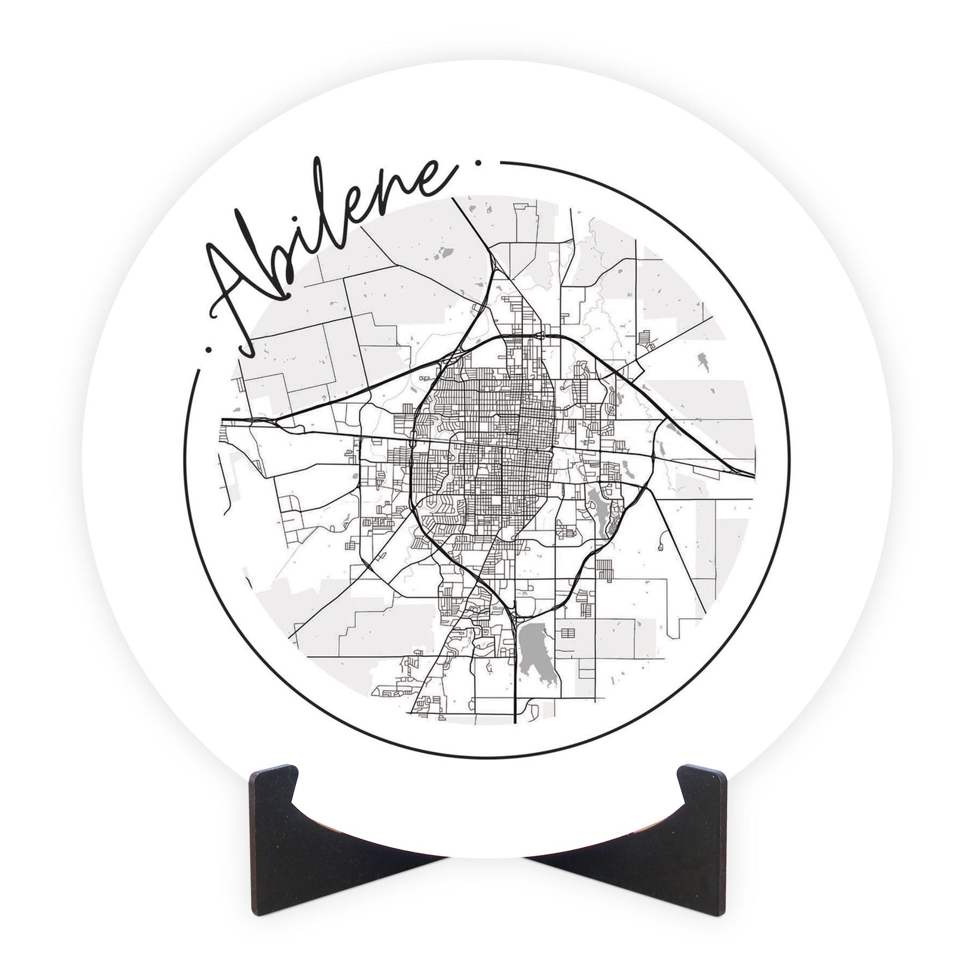 Minimalist B&W Texas Abilene Circle Map | Wood Sign | Eaches | Min 1