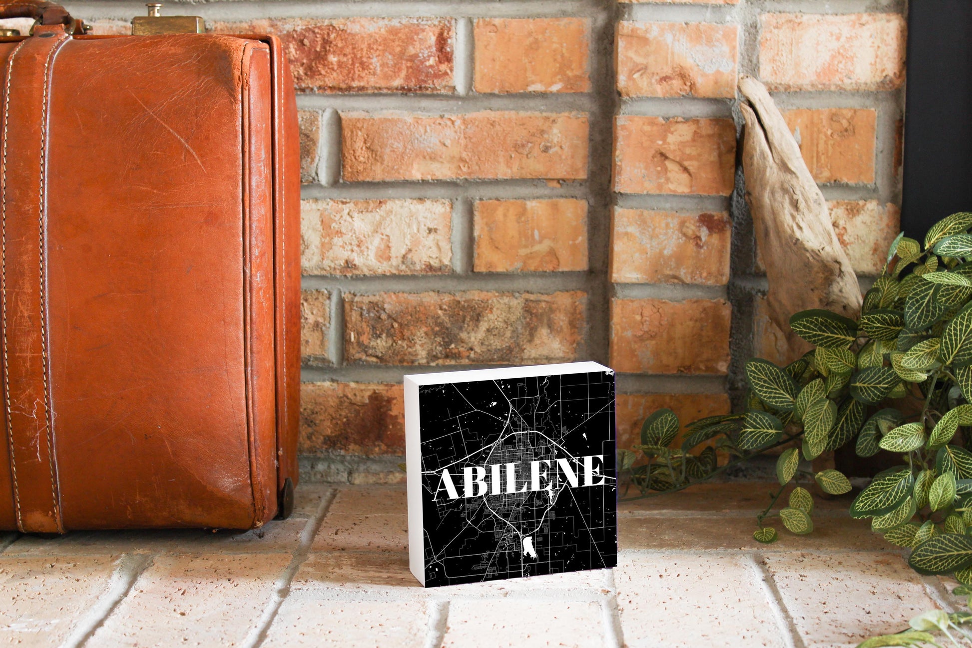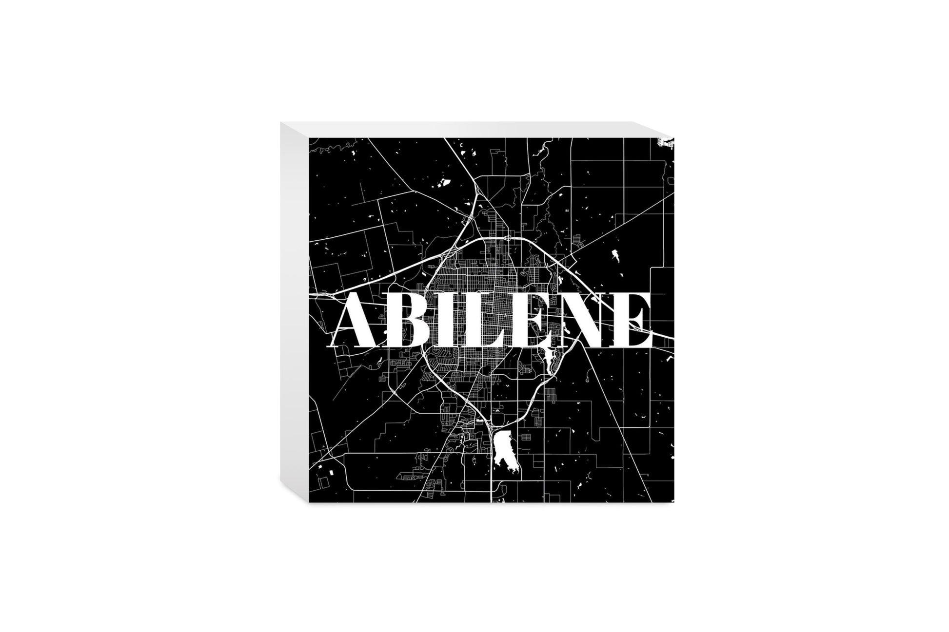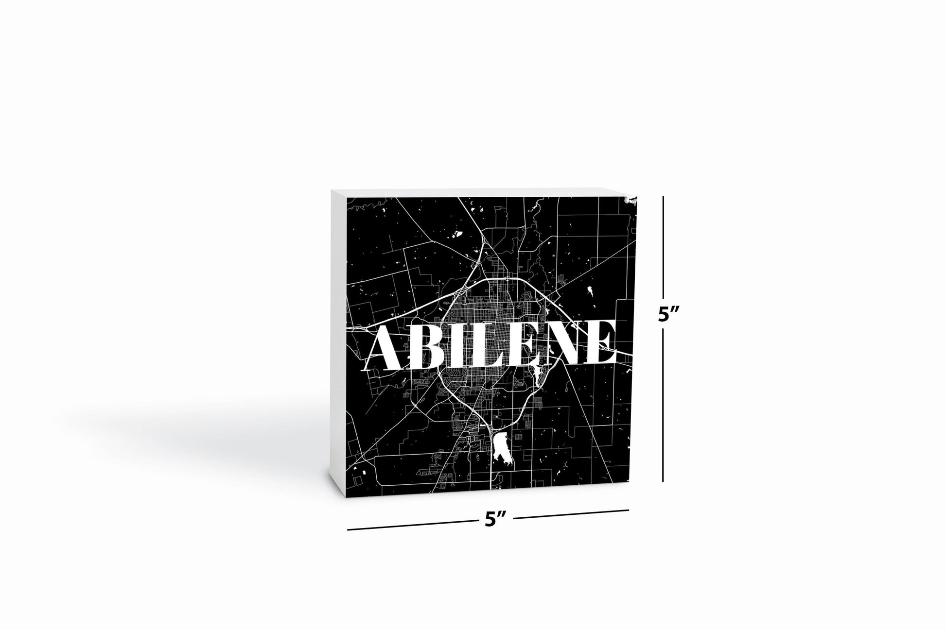Minimalist B&W Texas Abilene Map | Wood Block | Eaches | Min 4