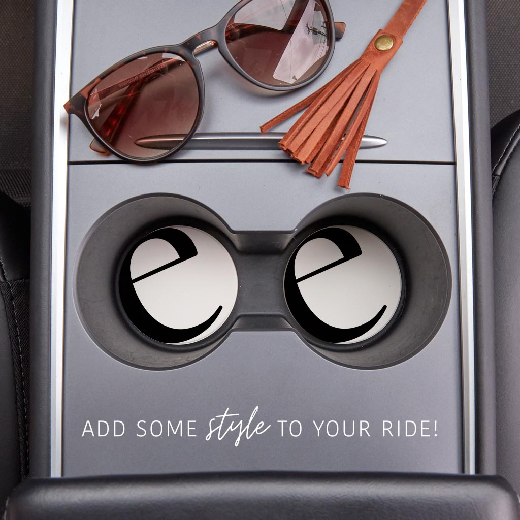 Minimalist Monogram E Circle | Absorbent Car Coasters | Set of 2 | Min 4