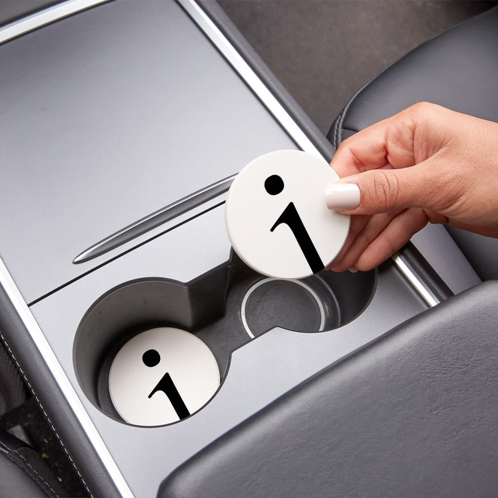 Minimalist Monogram I Circle | Absorbent Car Coasters | Set of 2 | Min 4