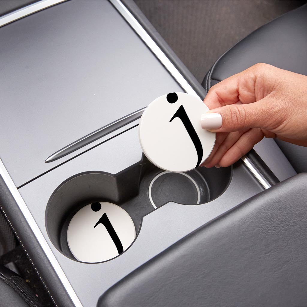 Minimalist Monogram J Circle| Absorbent Car Coasters | Set of 2 | Min 4