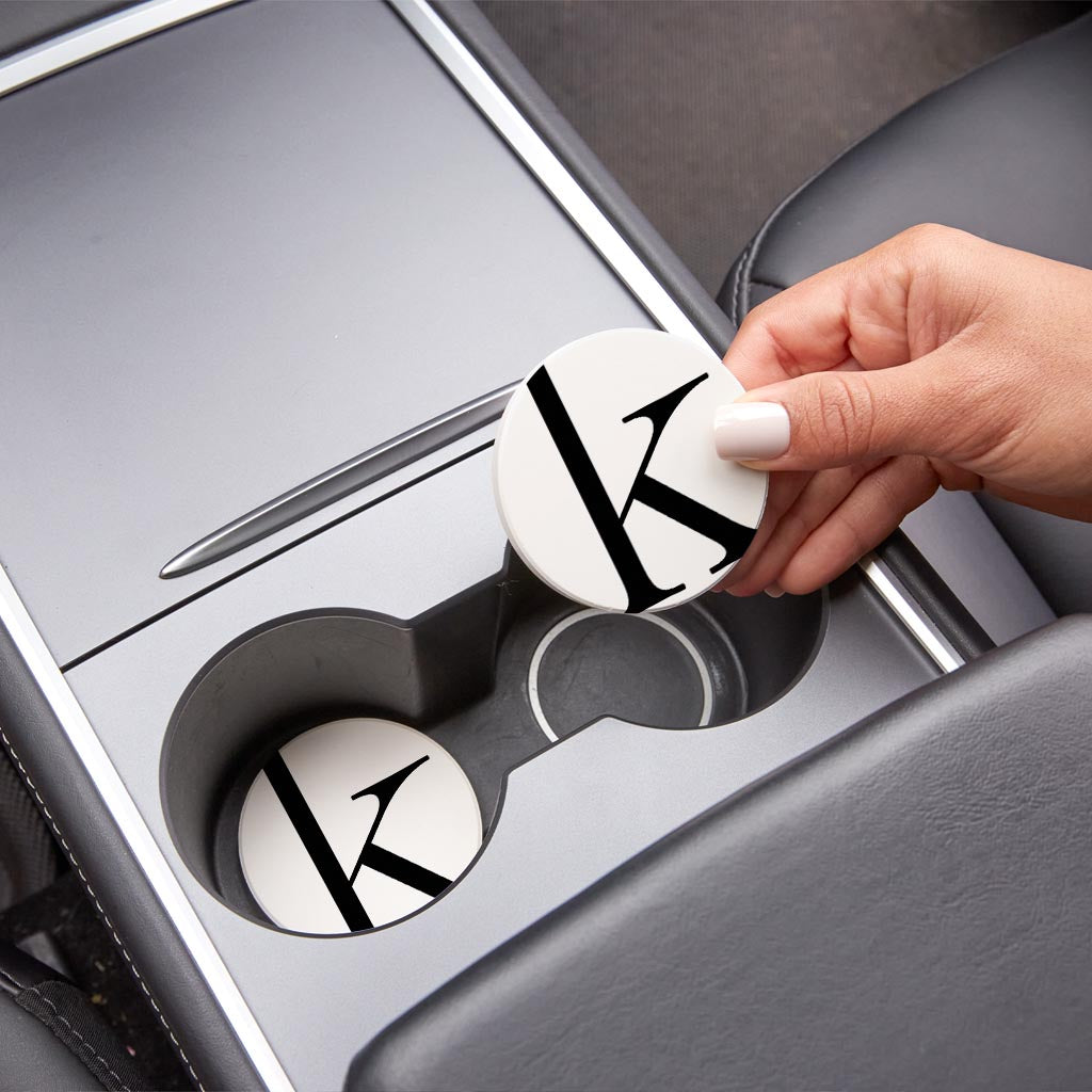 Minimalist Monogram K Circle | Absorbent Car Coasters | Set of 2 | Min 4
