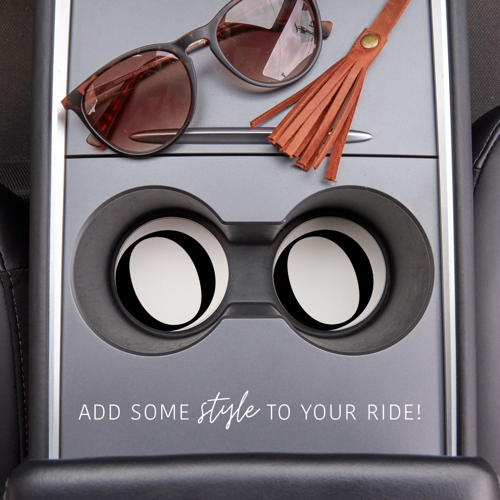 Minimalist Monogram O Circle | Absorbent Car Coasters | Set of 2 | Min 4