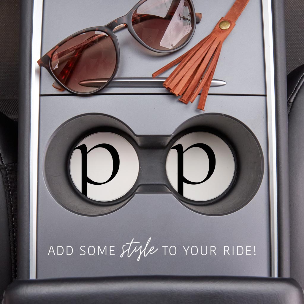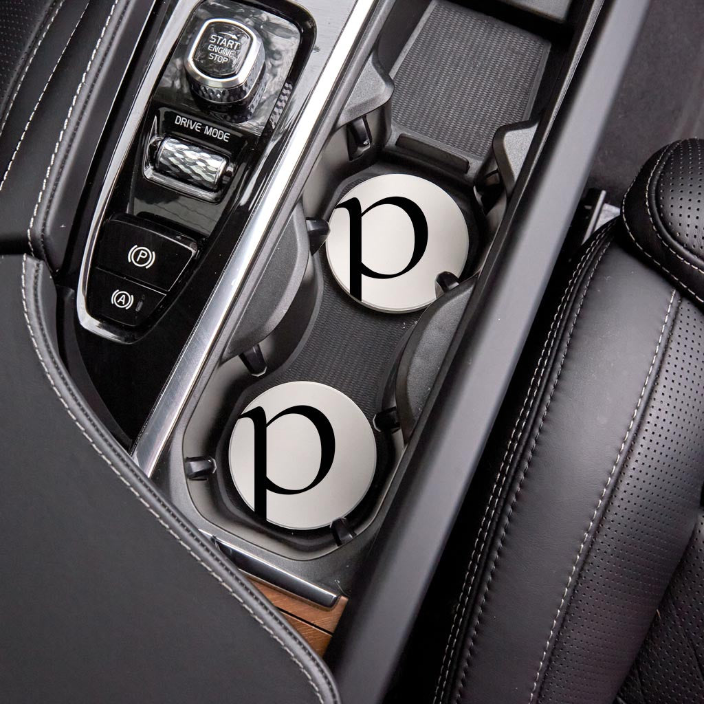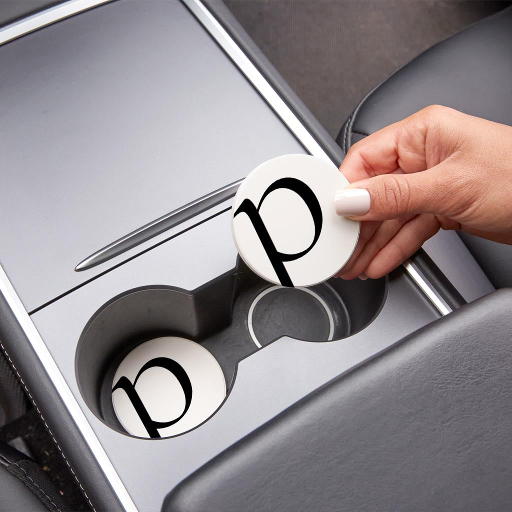 Minimalist Monogram P Circle | Absorbent Car Coasters | Set of 2 | Min 4