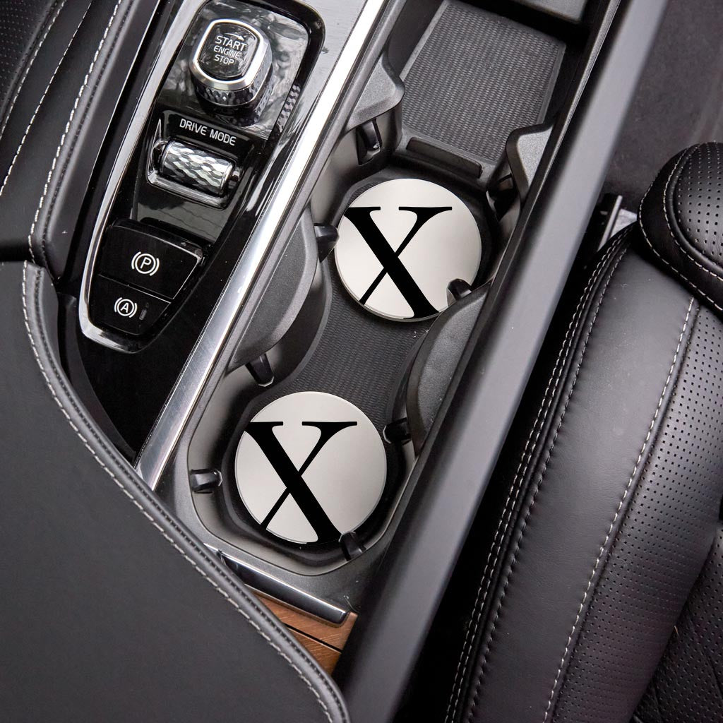Minimalist Monogram X Circle | Absorbent Car Coasters | Set of 2 | Min 4