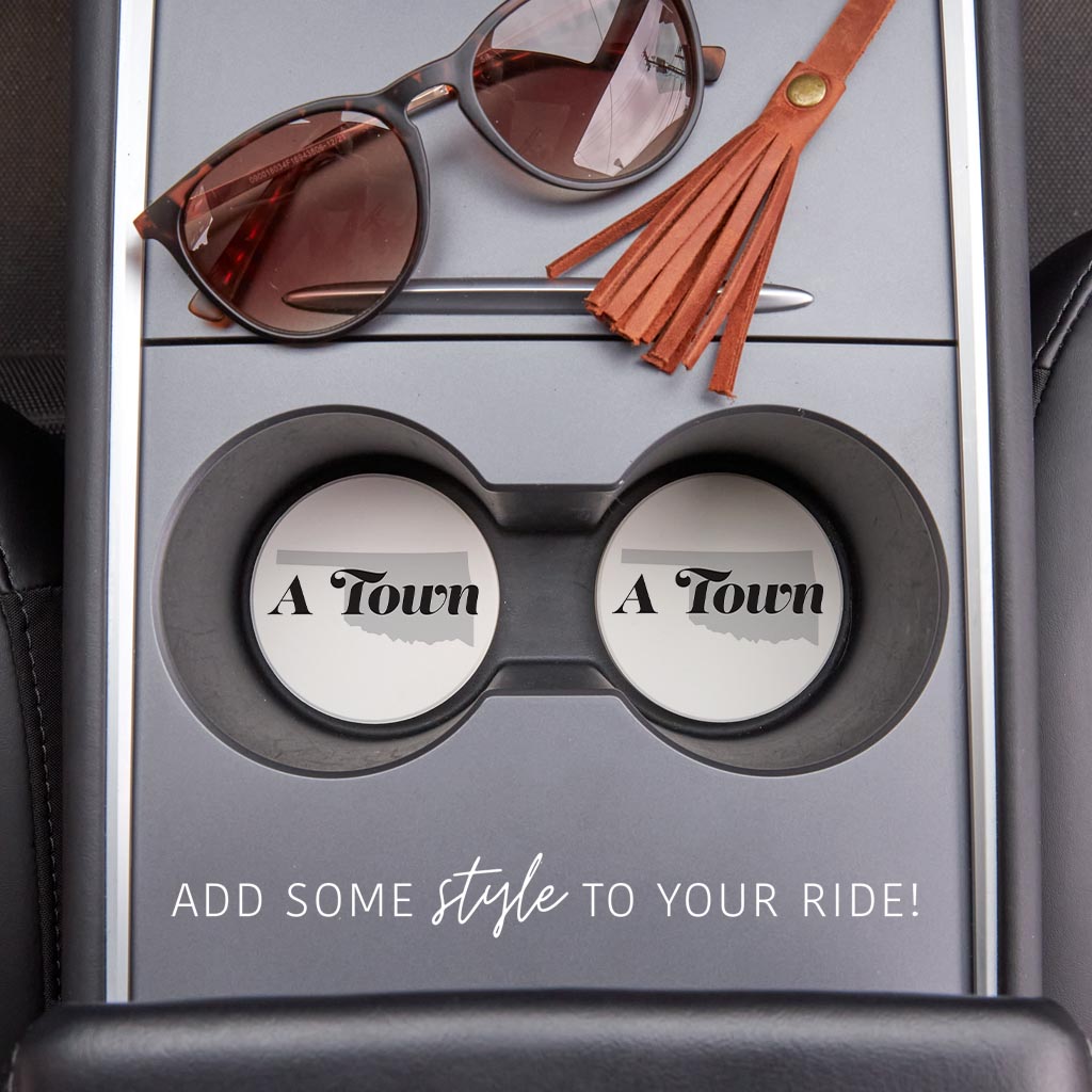 Minimalistic B&W Ardmore Ok A Town White| Absorbent Car Coasters | Set of 2 | Min 4