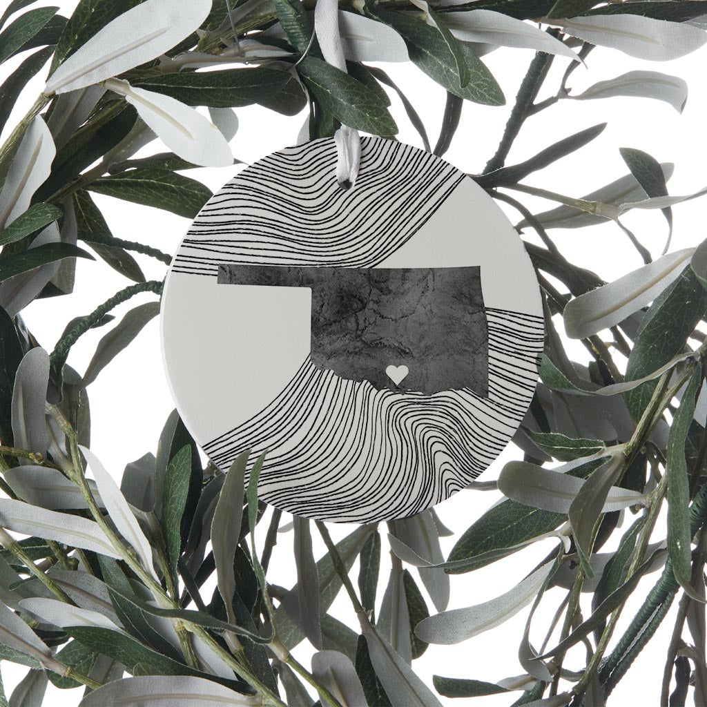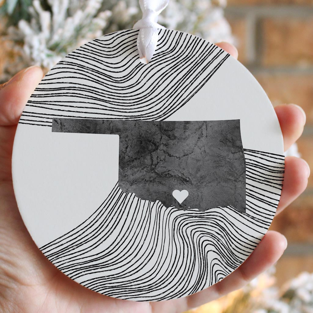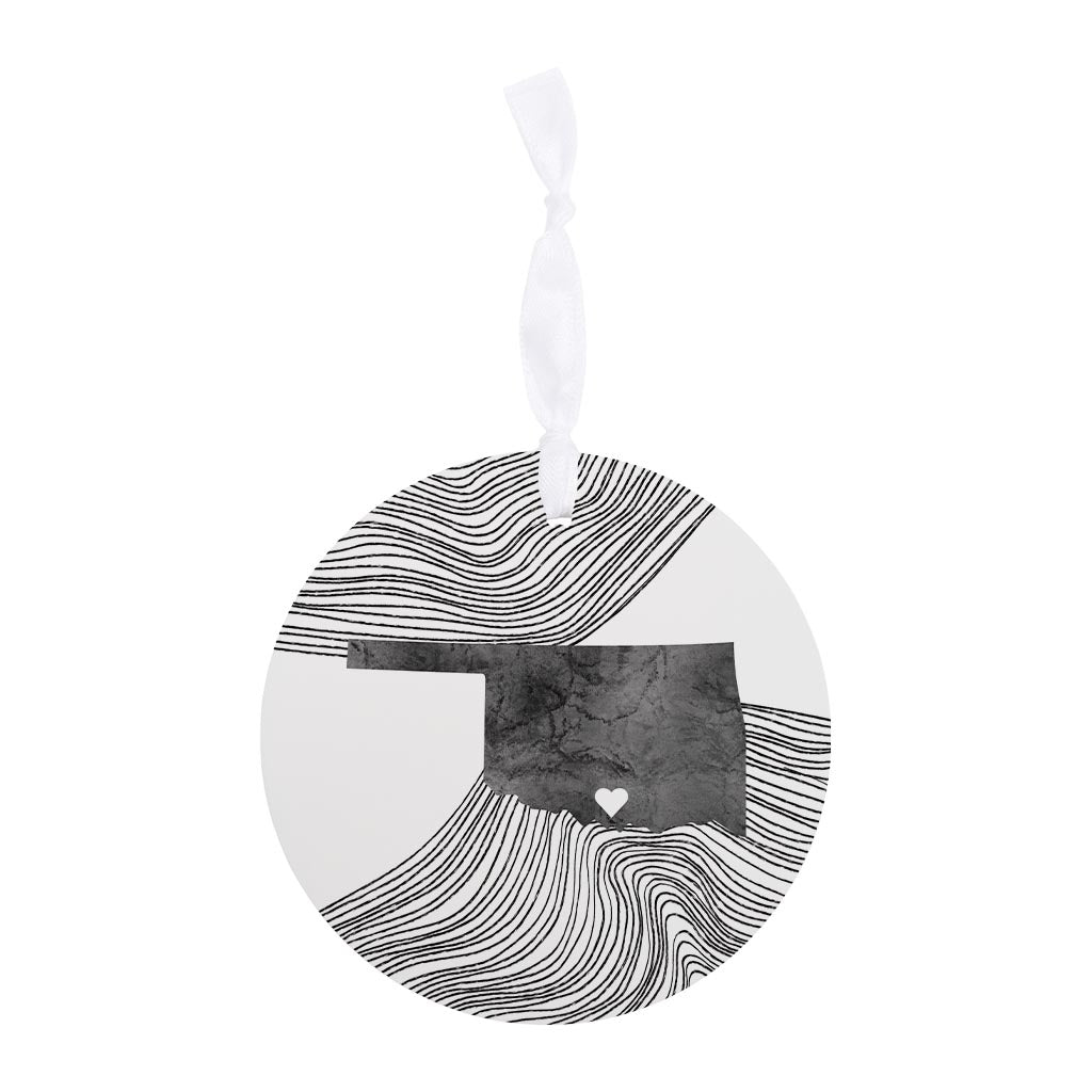 Minimalistic B&W Ardmore Ok Heart Fluid State| Wood Ornament | Eaches | Min 6