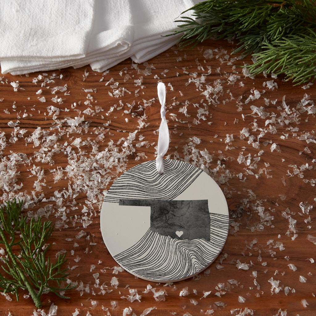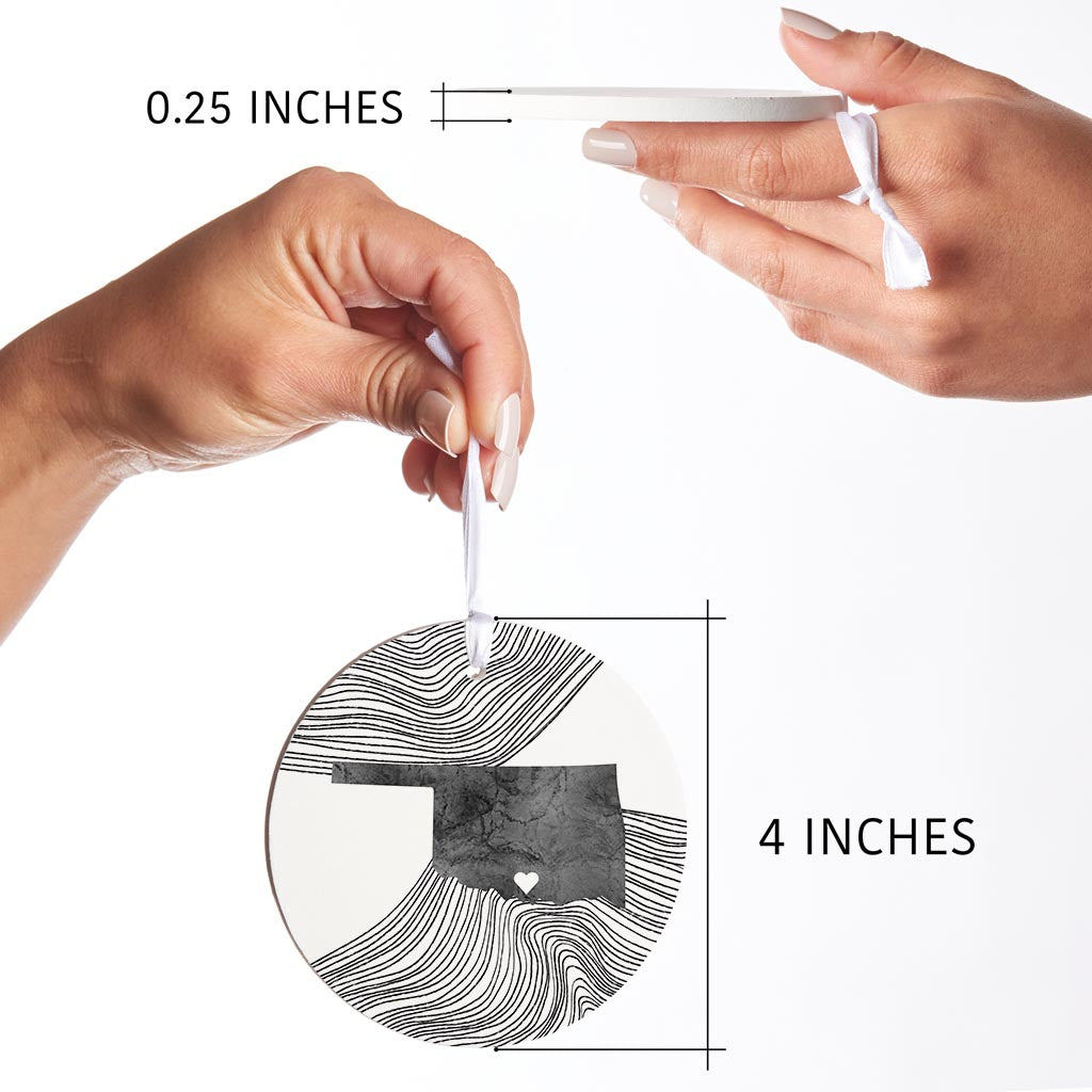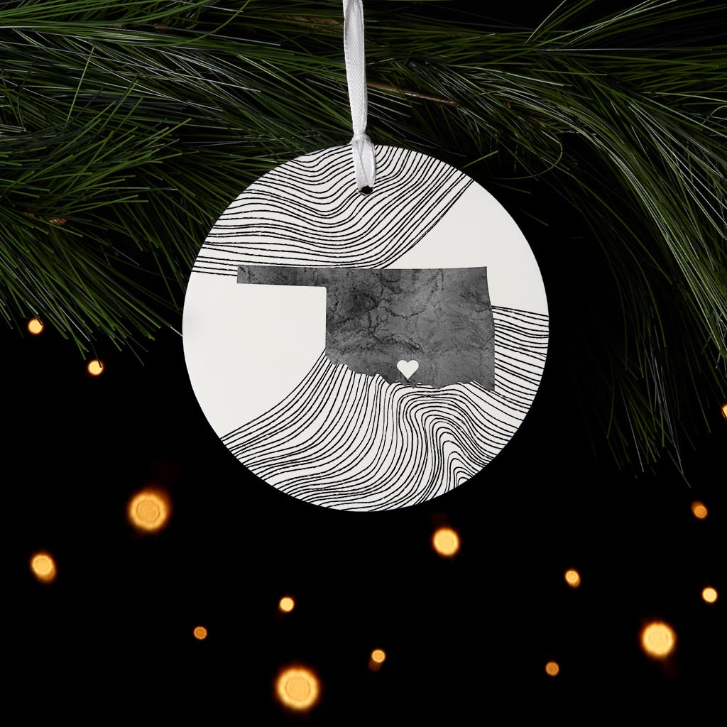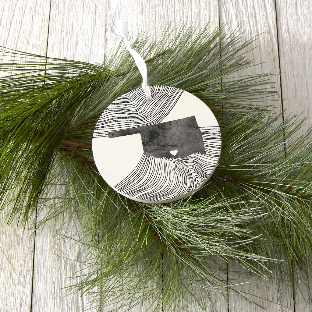 Minimalistic B&W Ardmore Ok Heart Fluid State| Wood Ornament | Eaches | Min 6