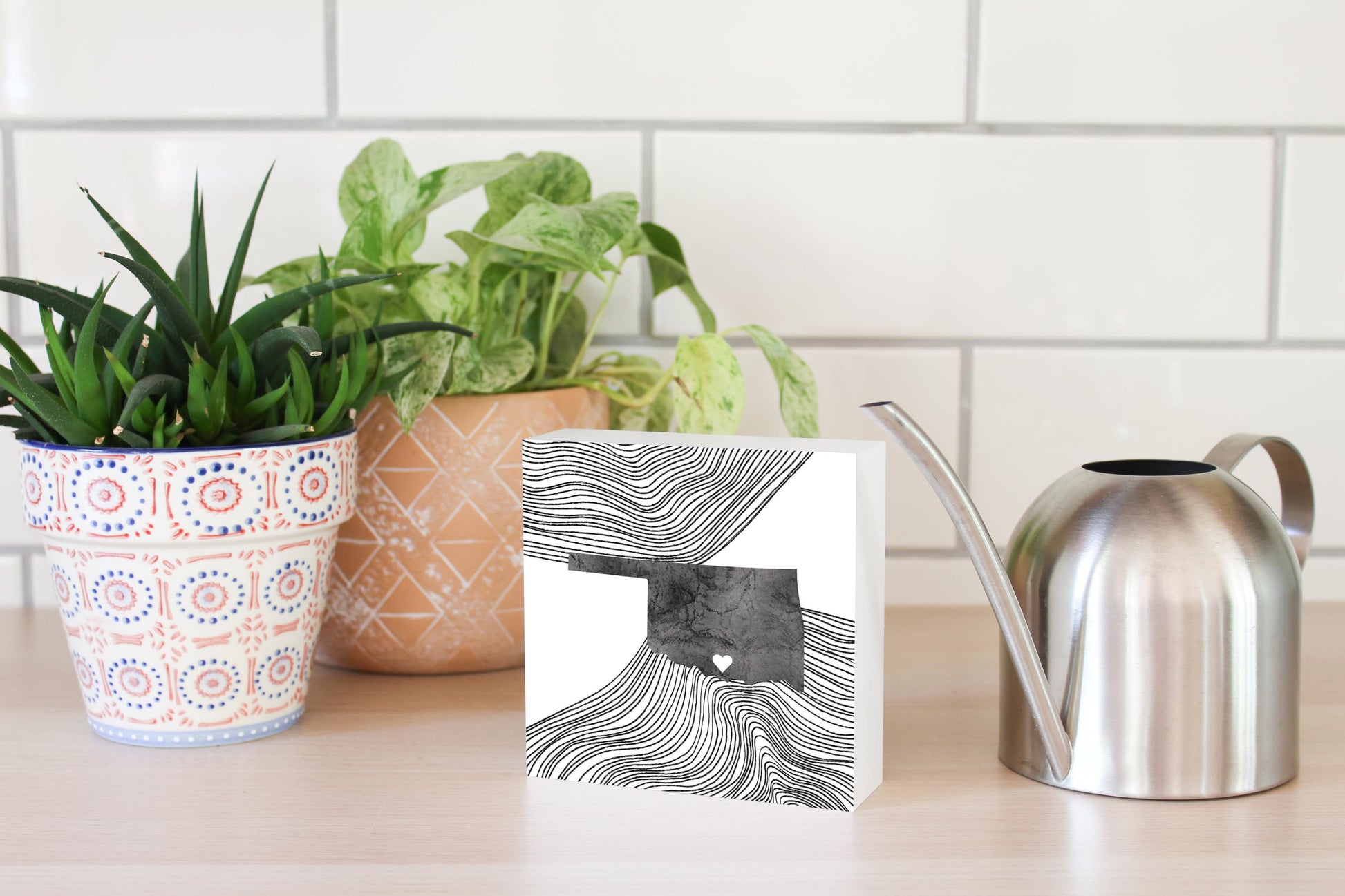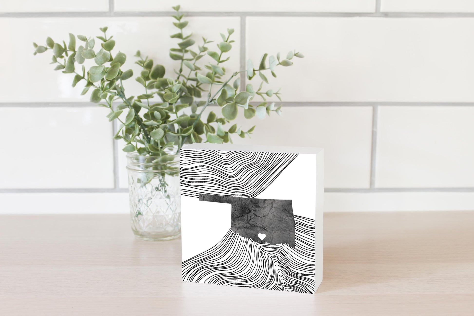 Minimalistic B&W Ardmore Ok Heart Fluid State | Wood Block | Eaches | Min 4