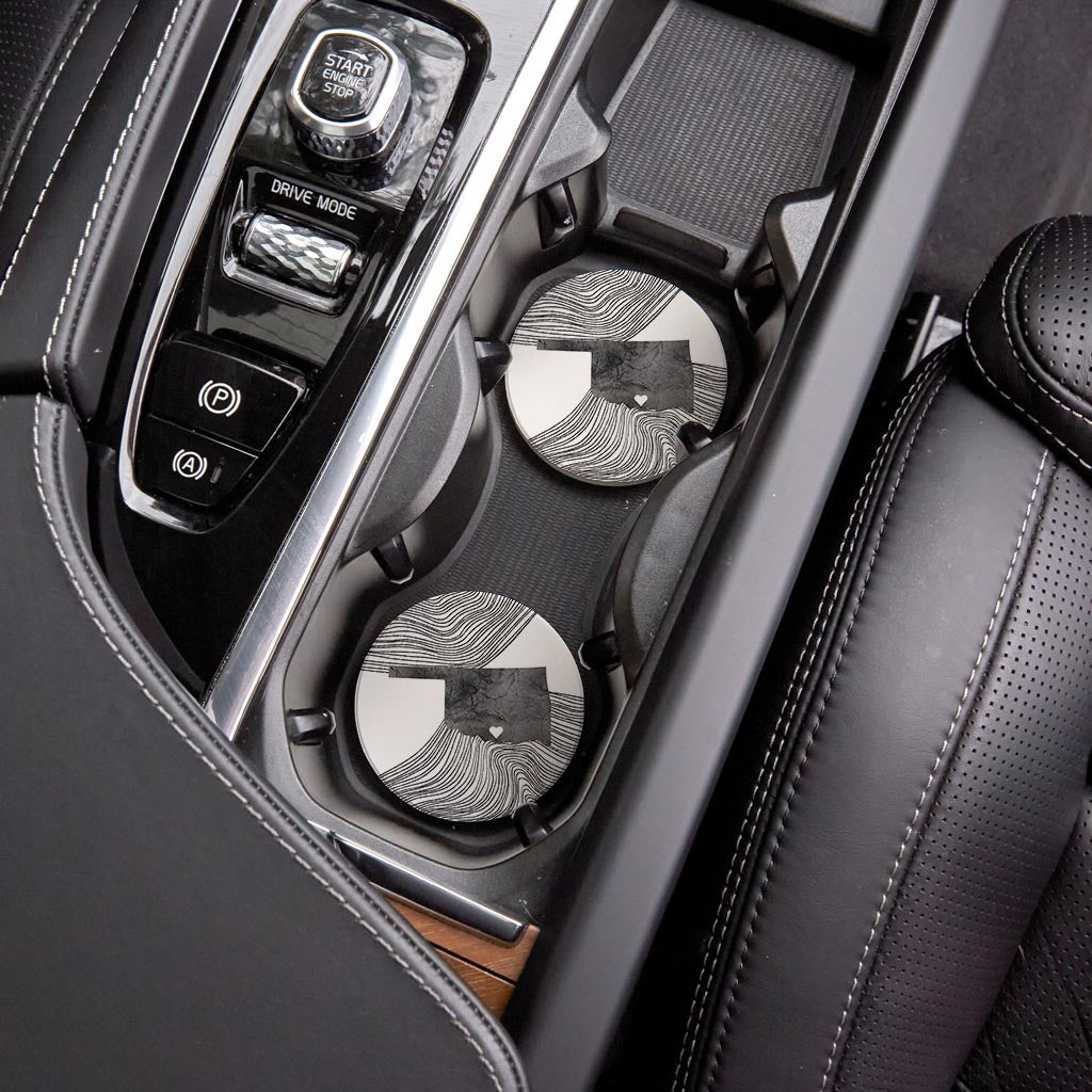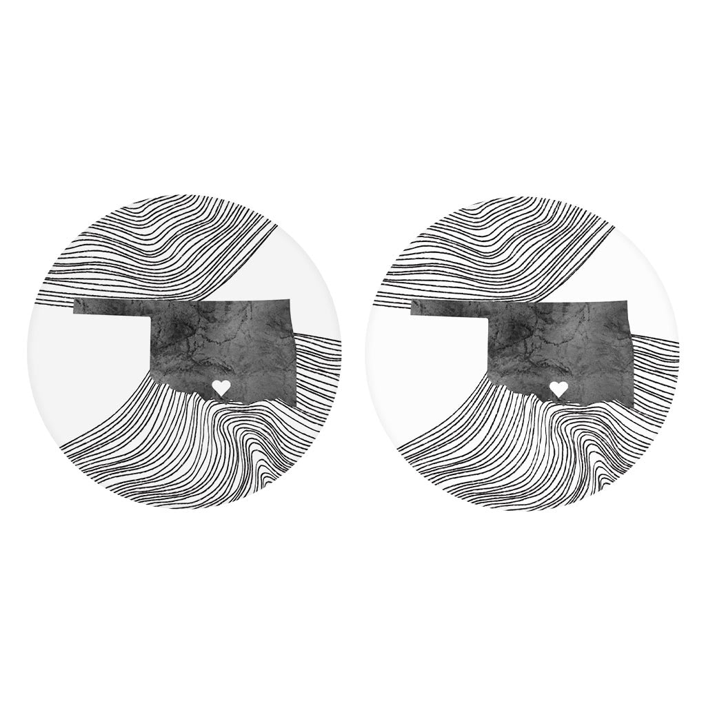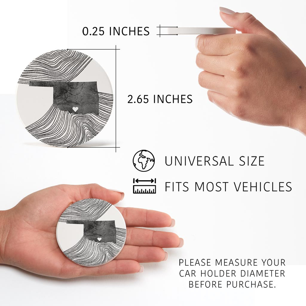 Minimalistic B&W Ardmore Ok Heart Fluid State | Absorbent Car Coasters | Set of 2 | Min 4