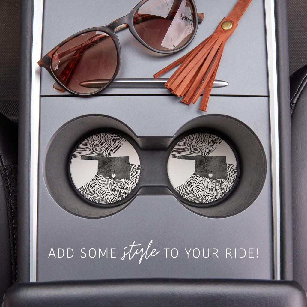 Car coasters are that little accessory that you didn’t know you needed but now consider an essential. Your cupholders are protected and kept clean by absorbing drips from your morning coffee to sticky juice boxes. The strategic divot edge allows you to easily pop it out and wipe clean. No more grime stuck in the cupholder abyss. While car coasters are wonderfully utilitarian, they also inject a little personality and design into the space you spend so much time in. Order a few to mix and match to your mood, season, or newest trends. We love when function and design coincide!