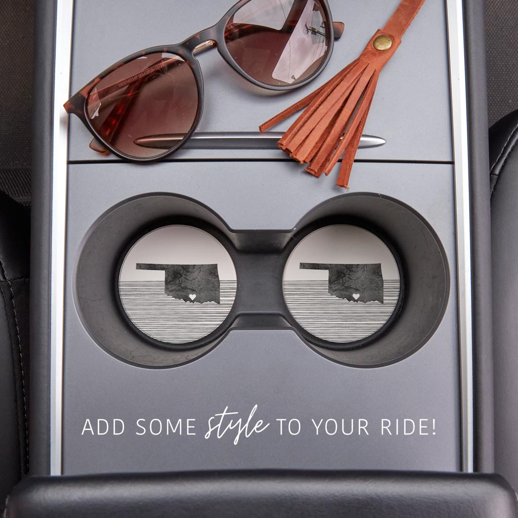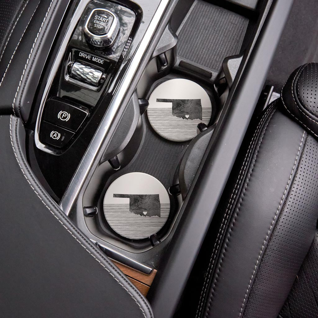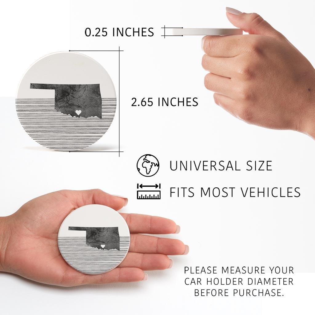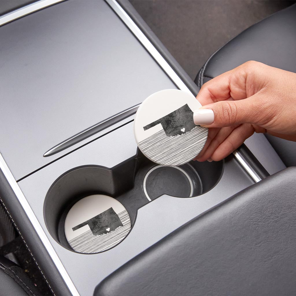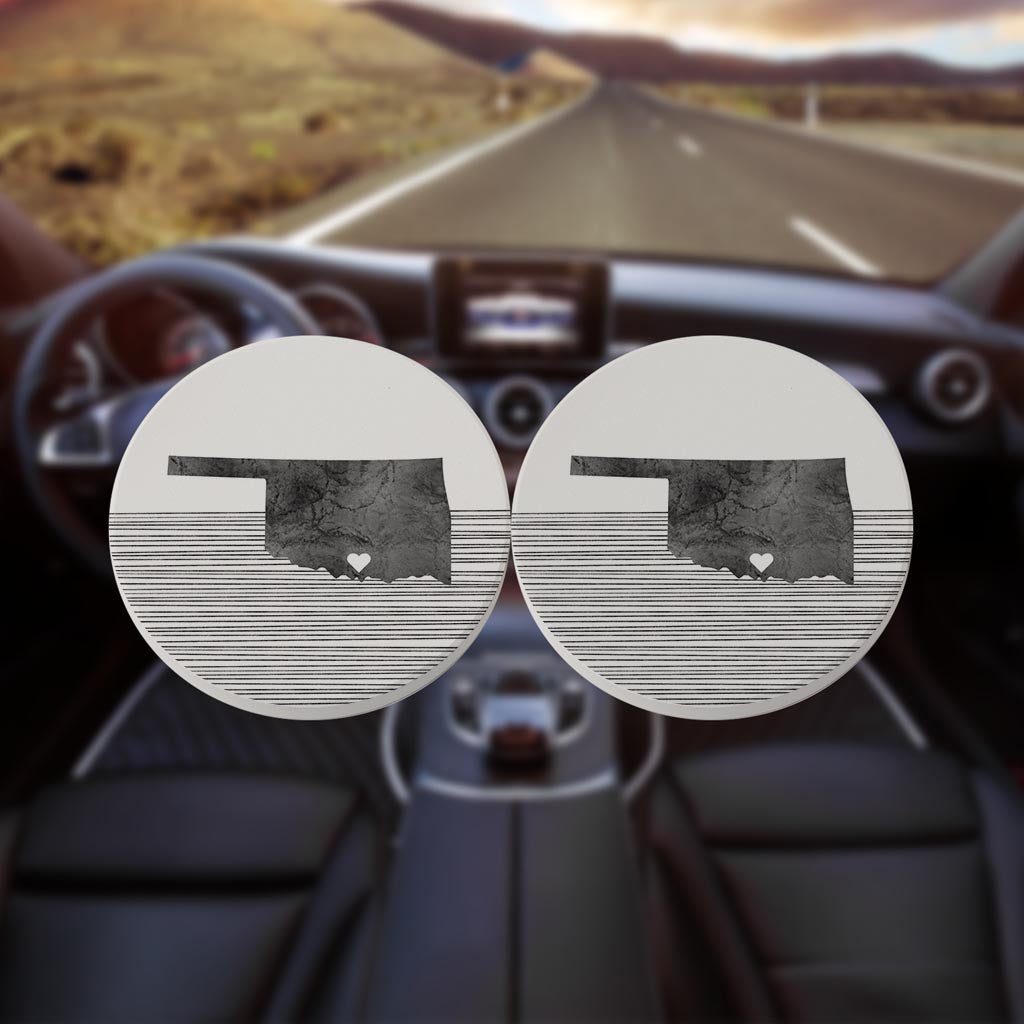 Minimalistic B&W Ardmore Ok Heart Straight State| Absorbent Car Coasters | Set of 2 | Min 4