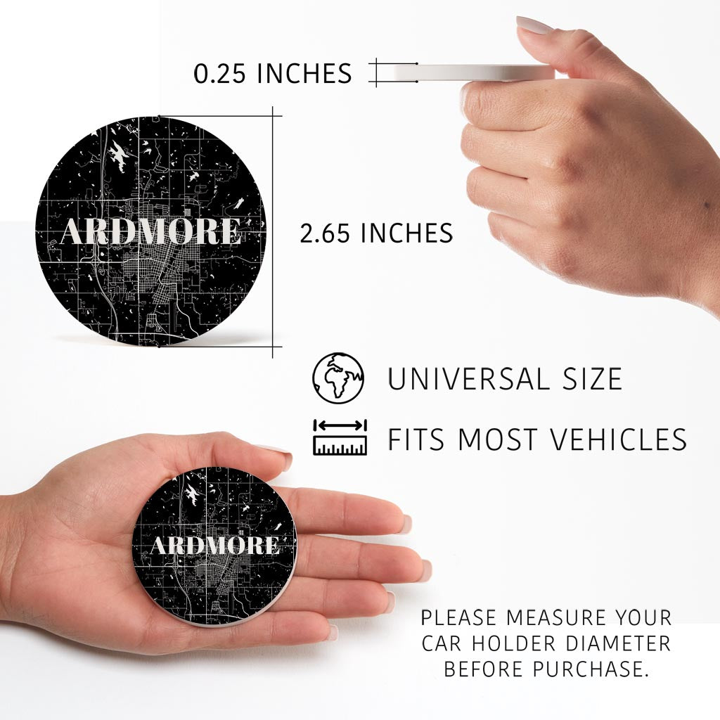 Minimalistic B&W Ardmore Ok Map | Absorbent Car Coasters | Set of 2 | Min 4
