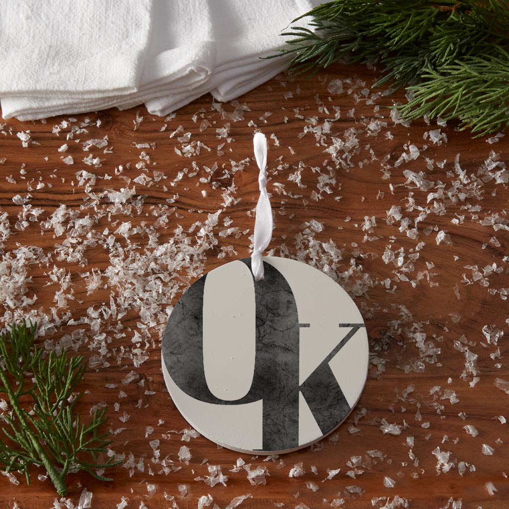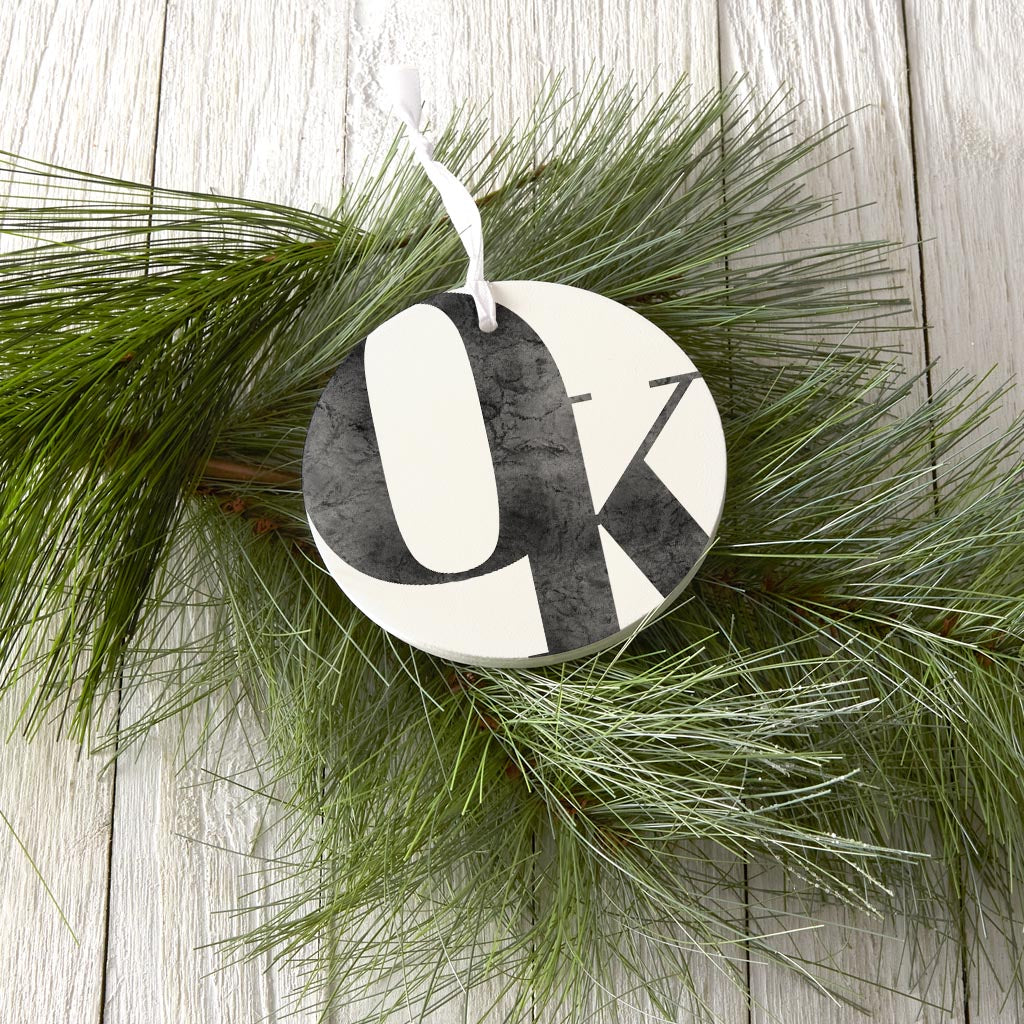 Minimalistic B&W Ardmore Ok White Initials| Wood Ornament | Eaches | Min 6