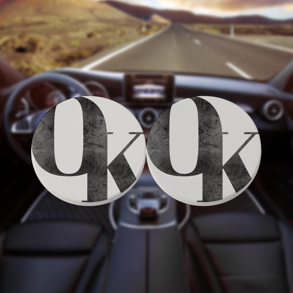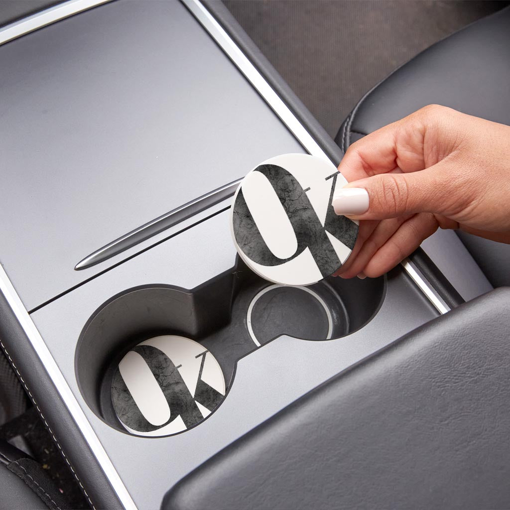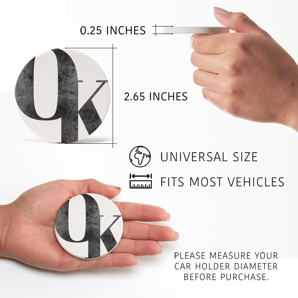 Minimalistic B&W Ardmore Ok White Initials | Absorbent Car Coasters | Set of 2 | Min 4