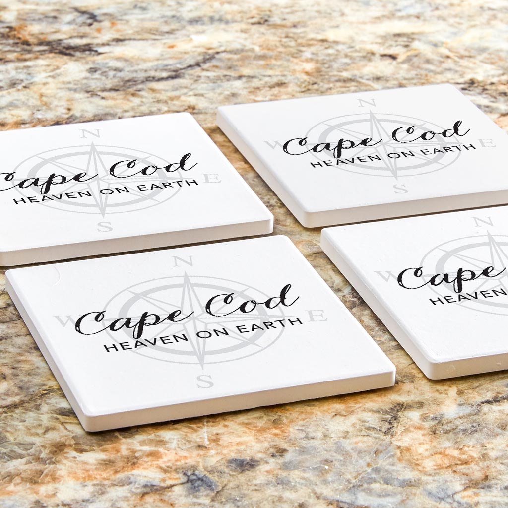 Minimalistic B&W Cape Cod Heaven On Earth | Absorbent Coasters | Set of 4 | Min 2