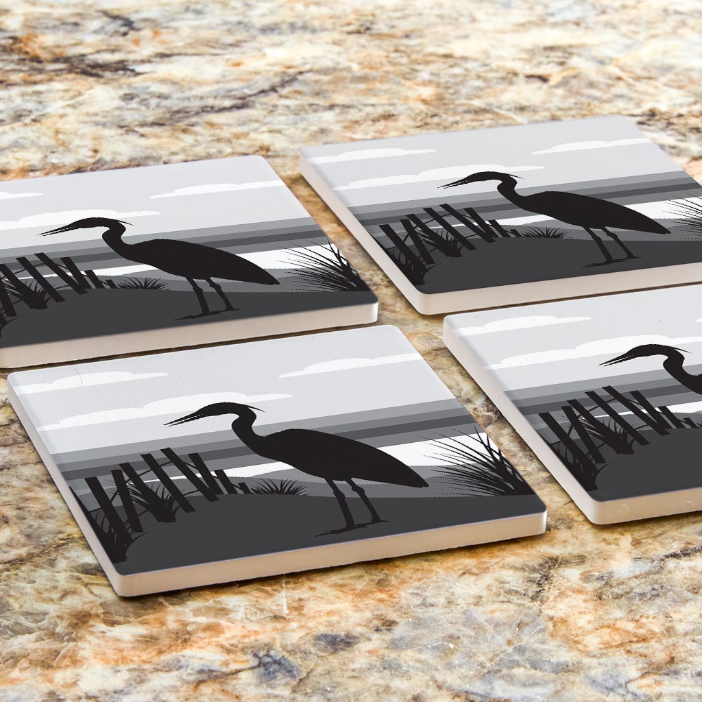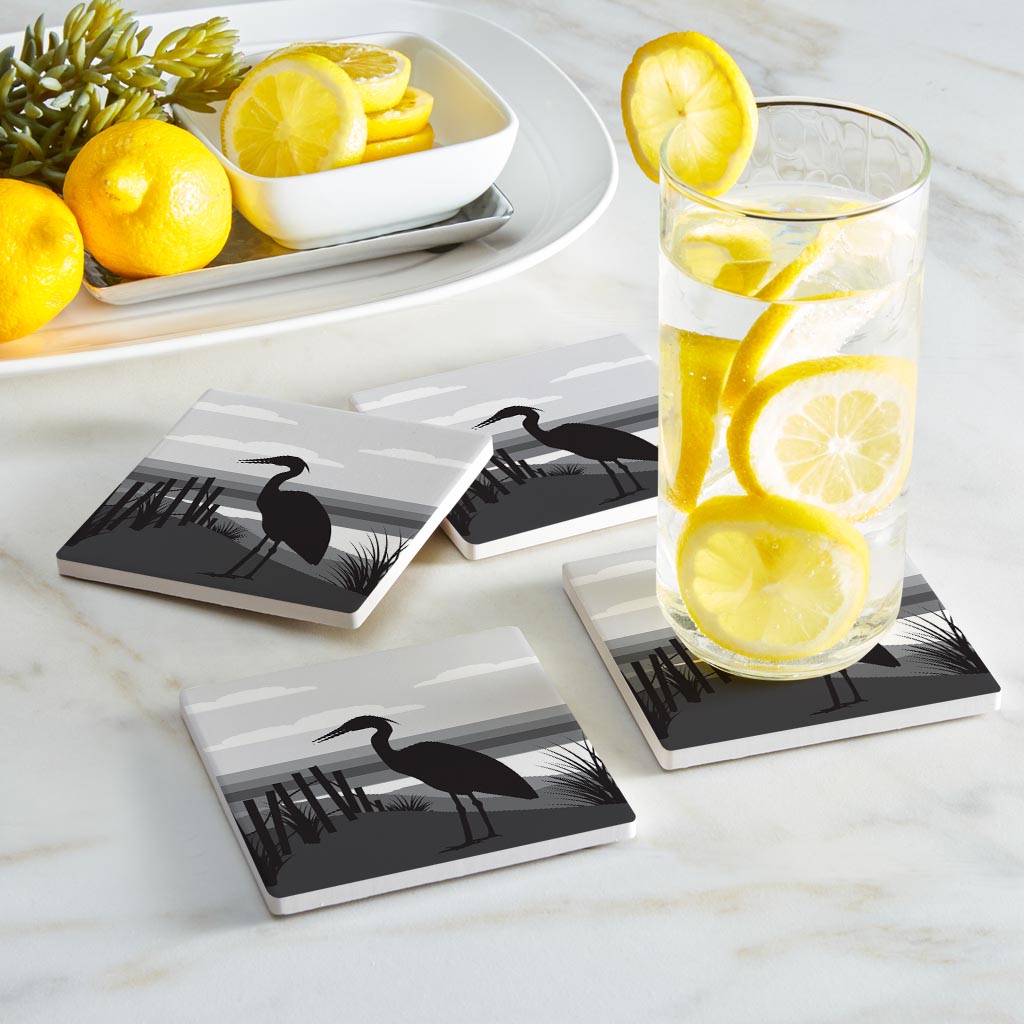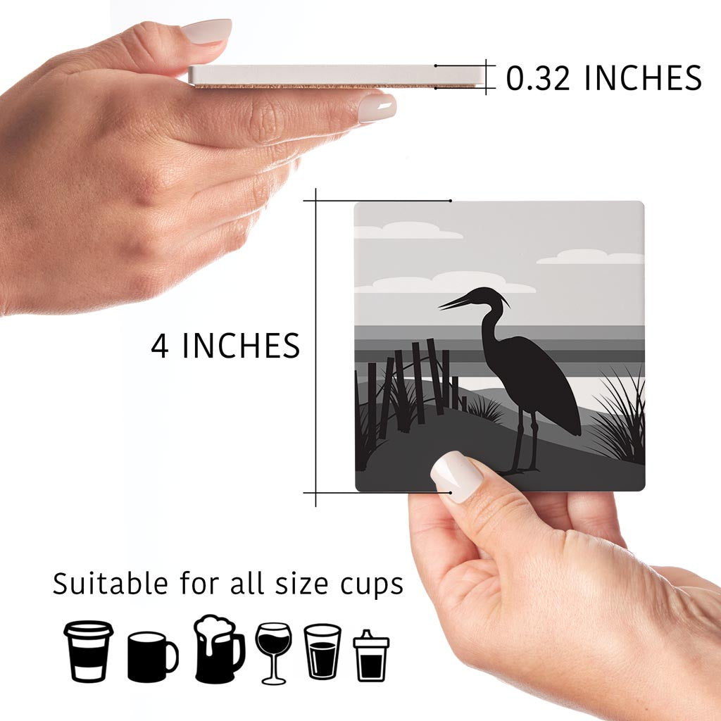 Minimalistic B&W Cape Cod Heron Illustration| Absorbent Coasters | Set of 4 | Min 2