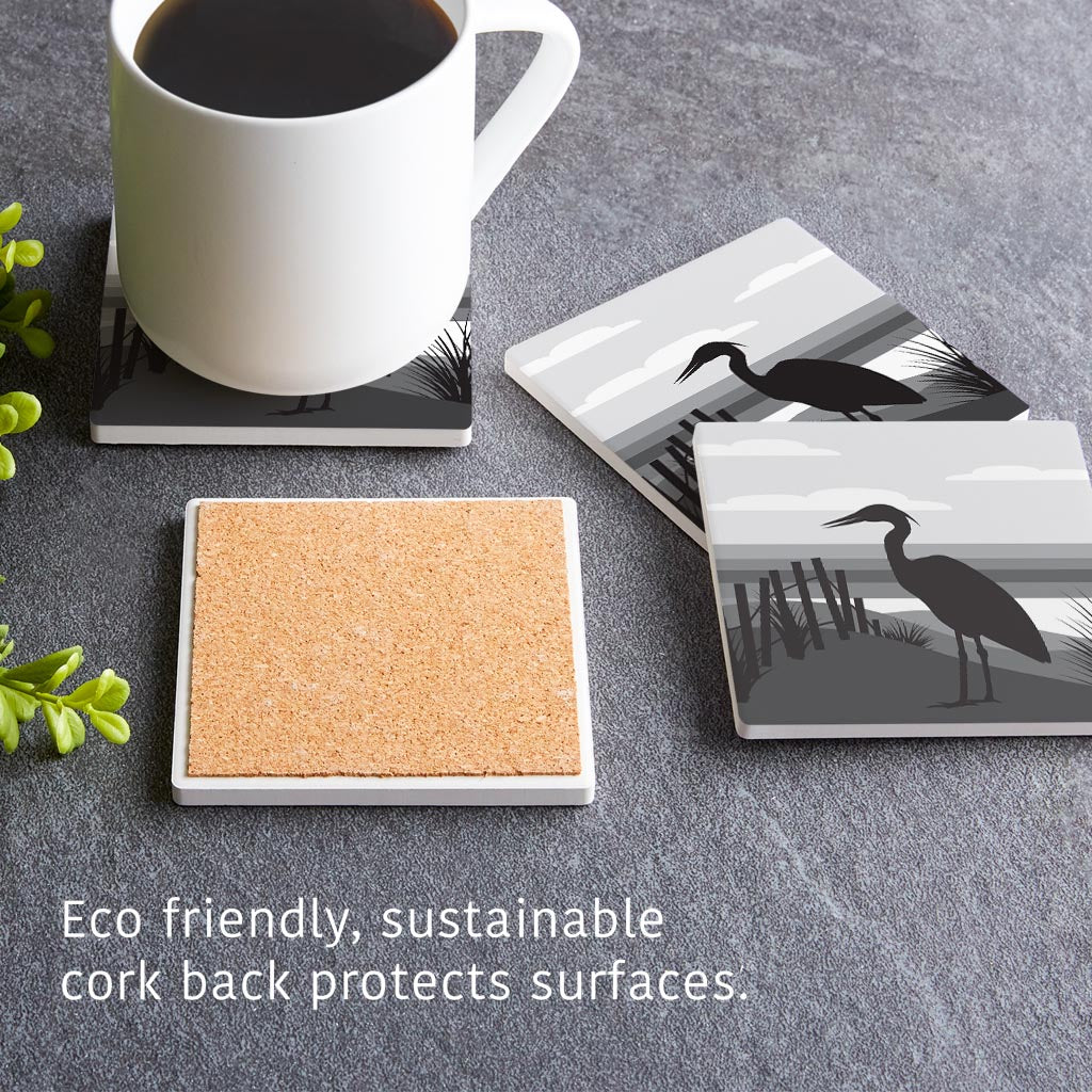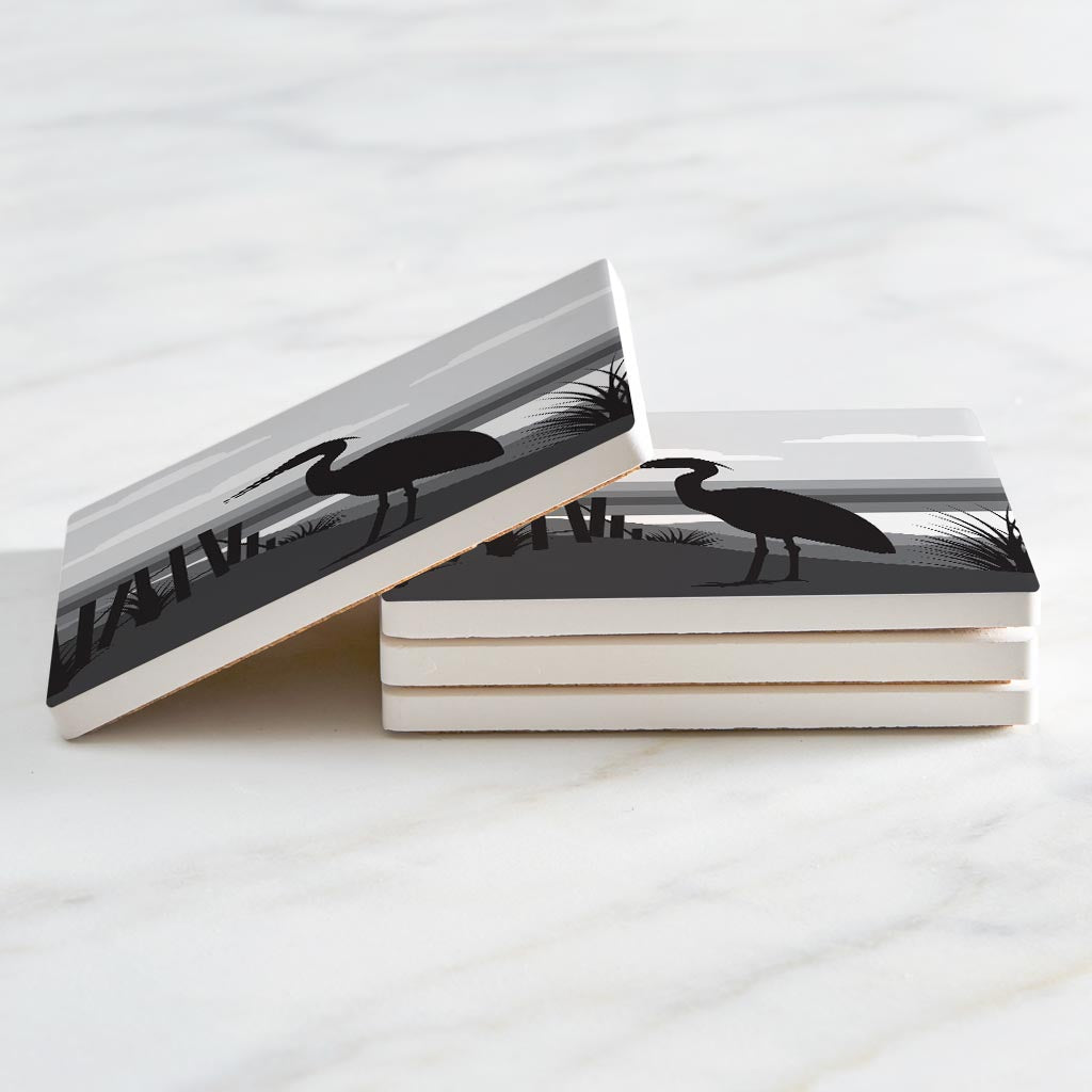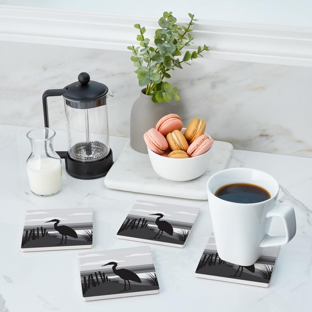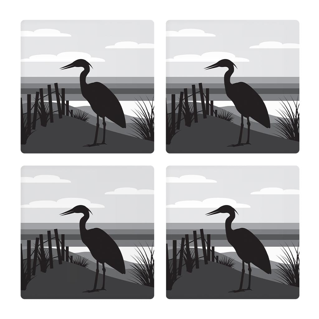 Minimalistic B&W Cape Cod Heron Illustration| Absorbent Coasters | Set of 4 | Min 2