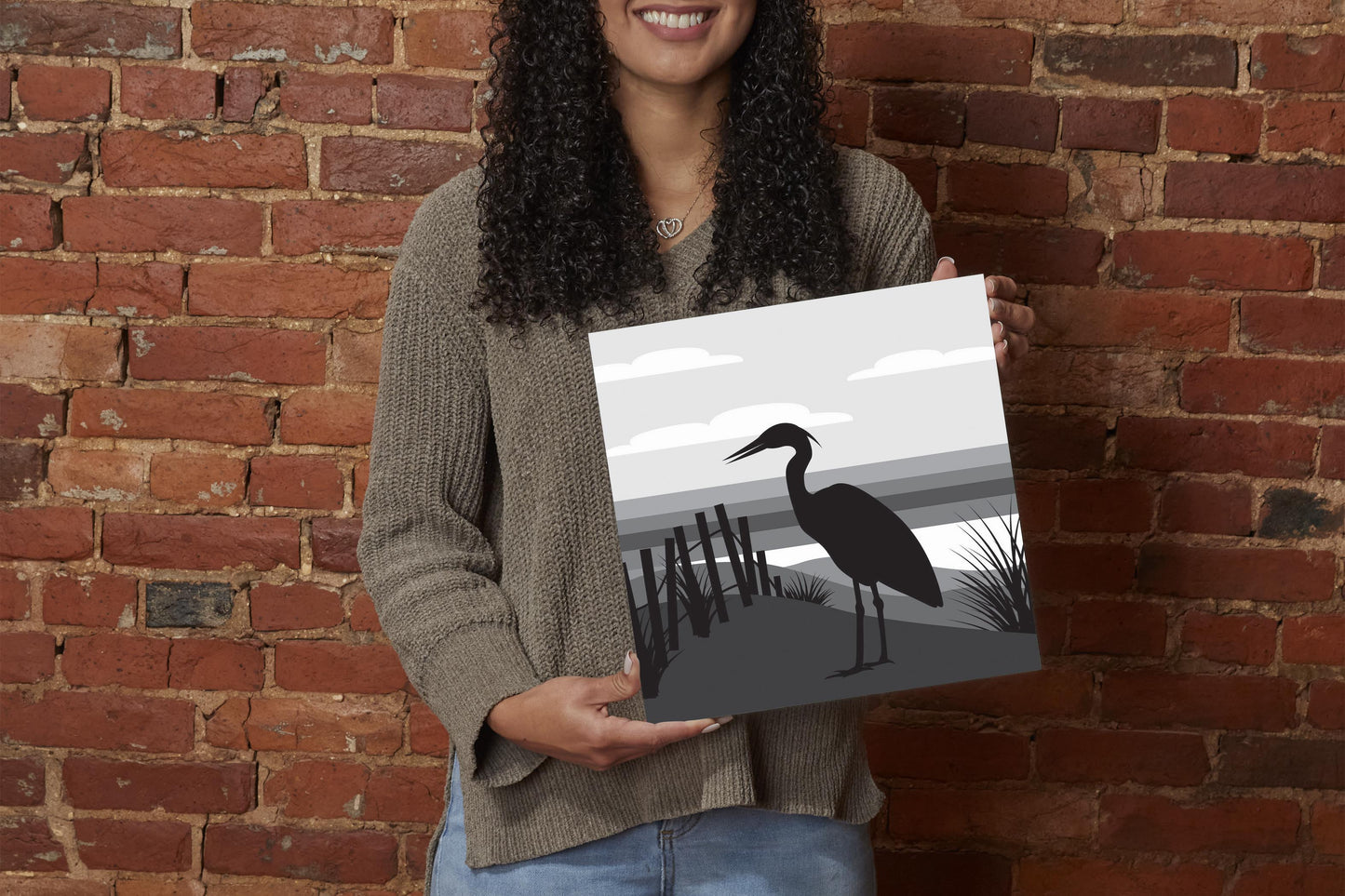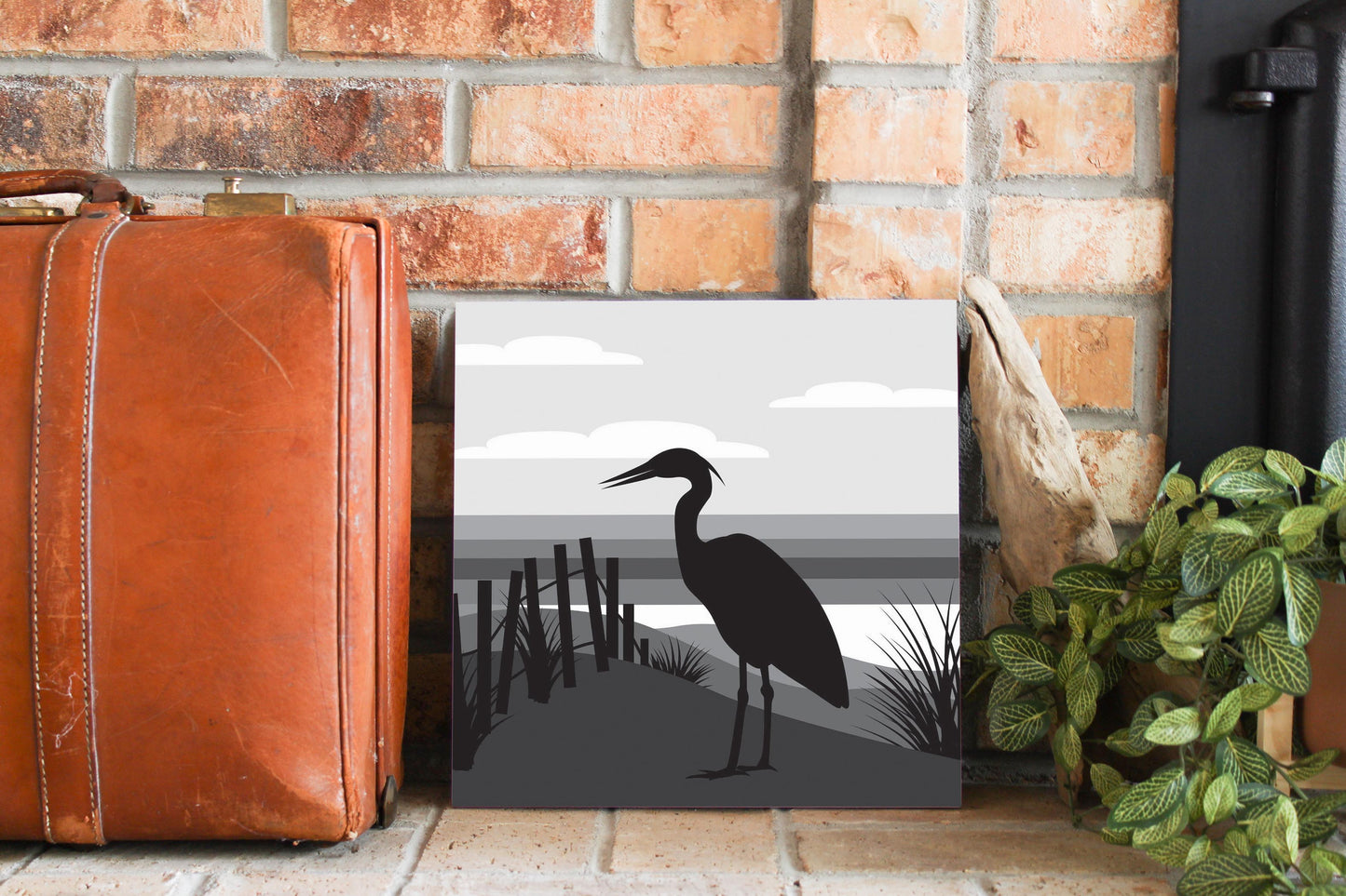 Minimalistic B&W Cape Cod Heron Illustration | Wood Sign | Eaches | Min 2