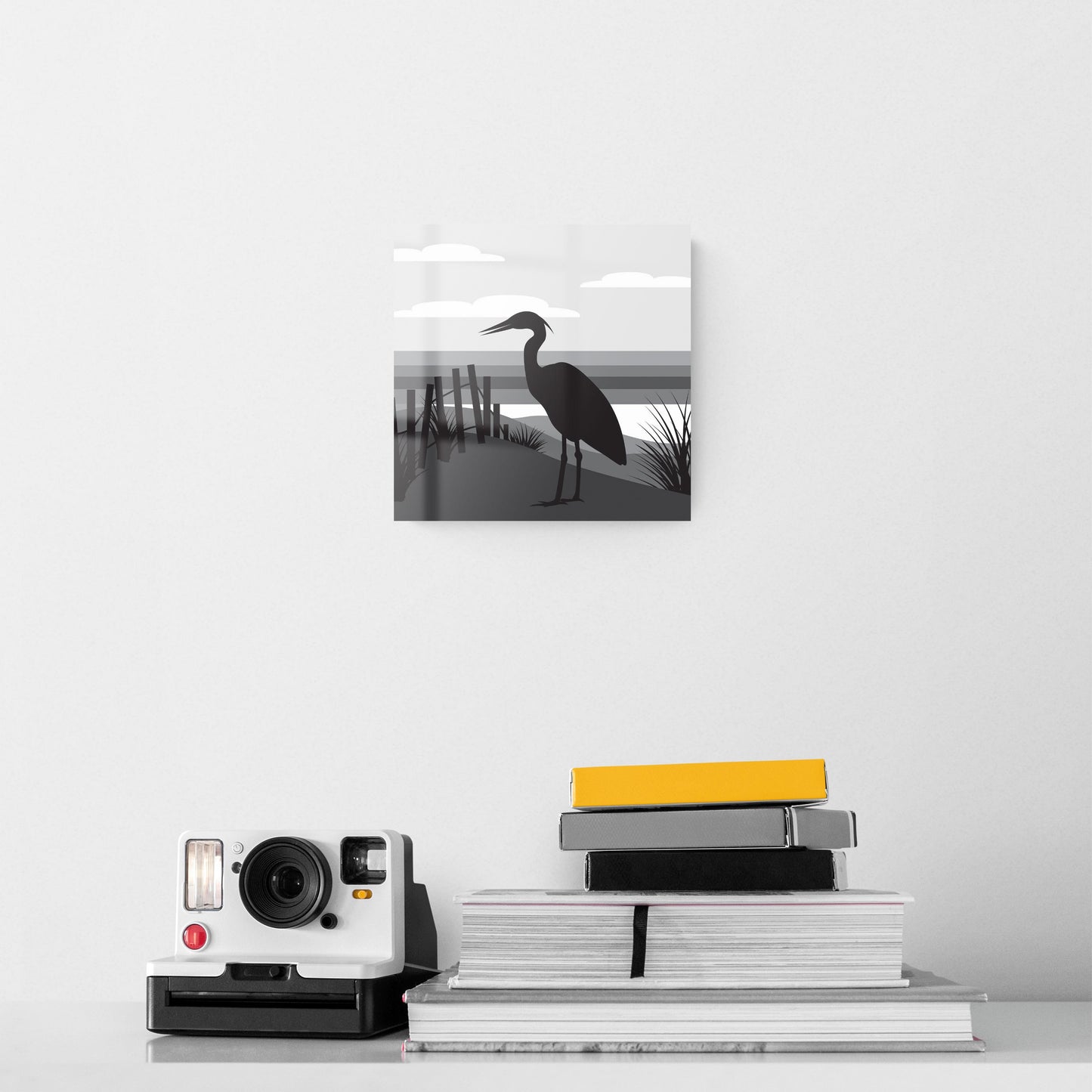 Minimalistic B&W Cape Cod Heron Illustration | Hi-Def Glass Art | Eaches | Min 2