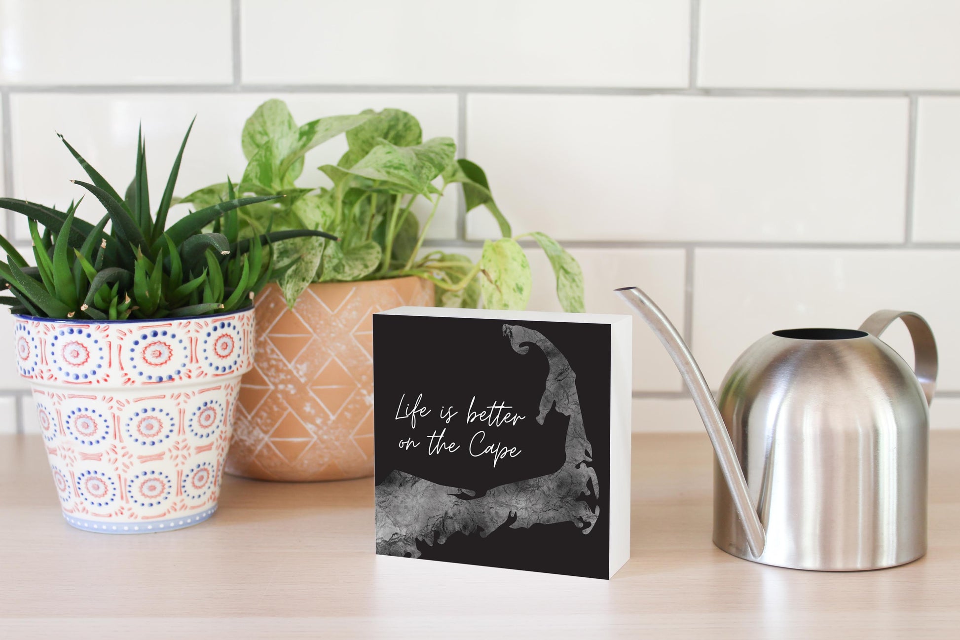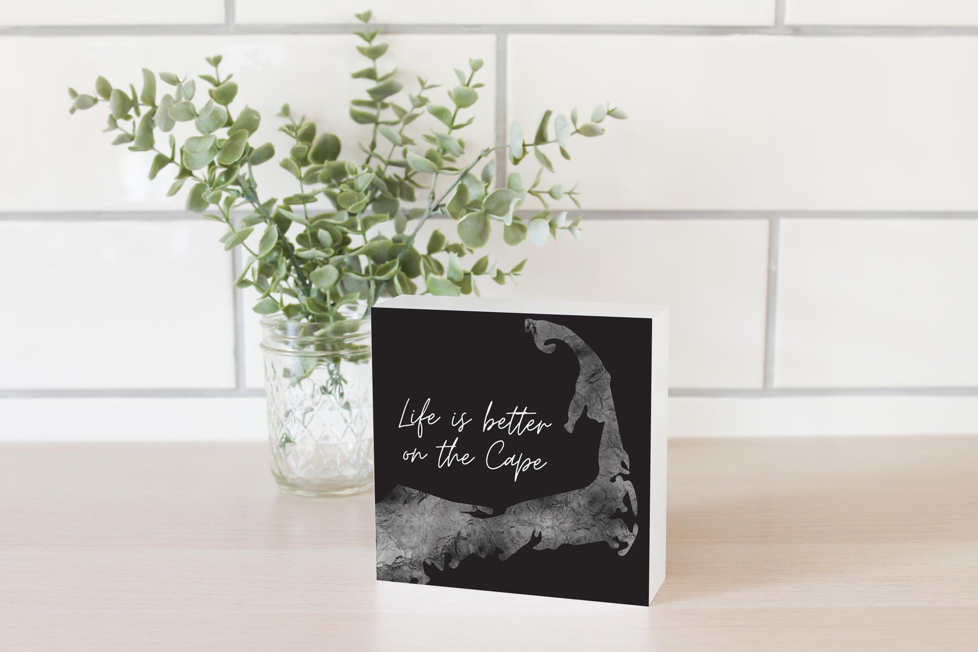 Minimalistic B&W Cape Cod Life Is Better| Wood Block | Eaches | Min 4