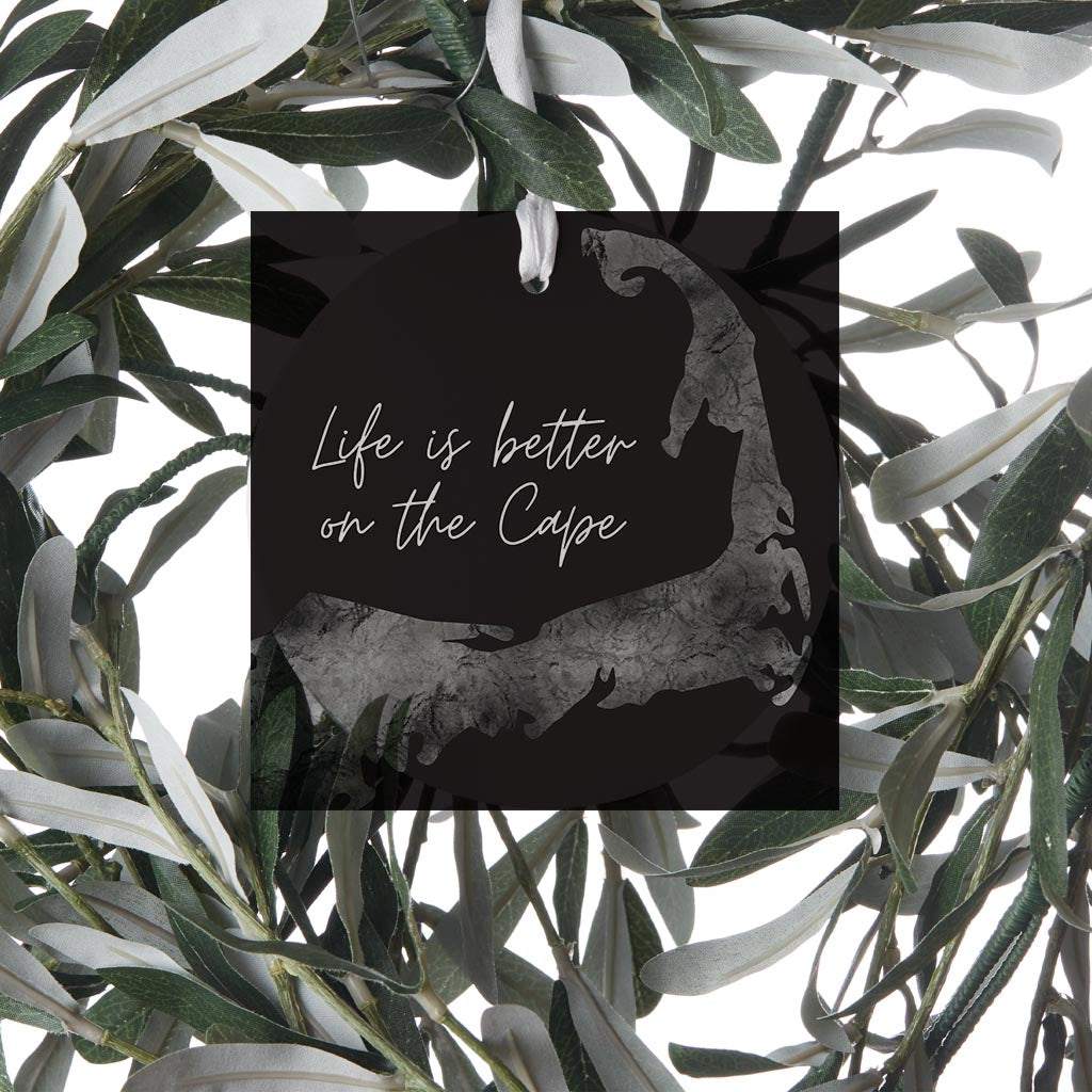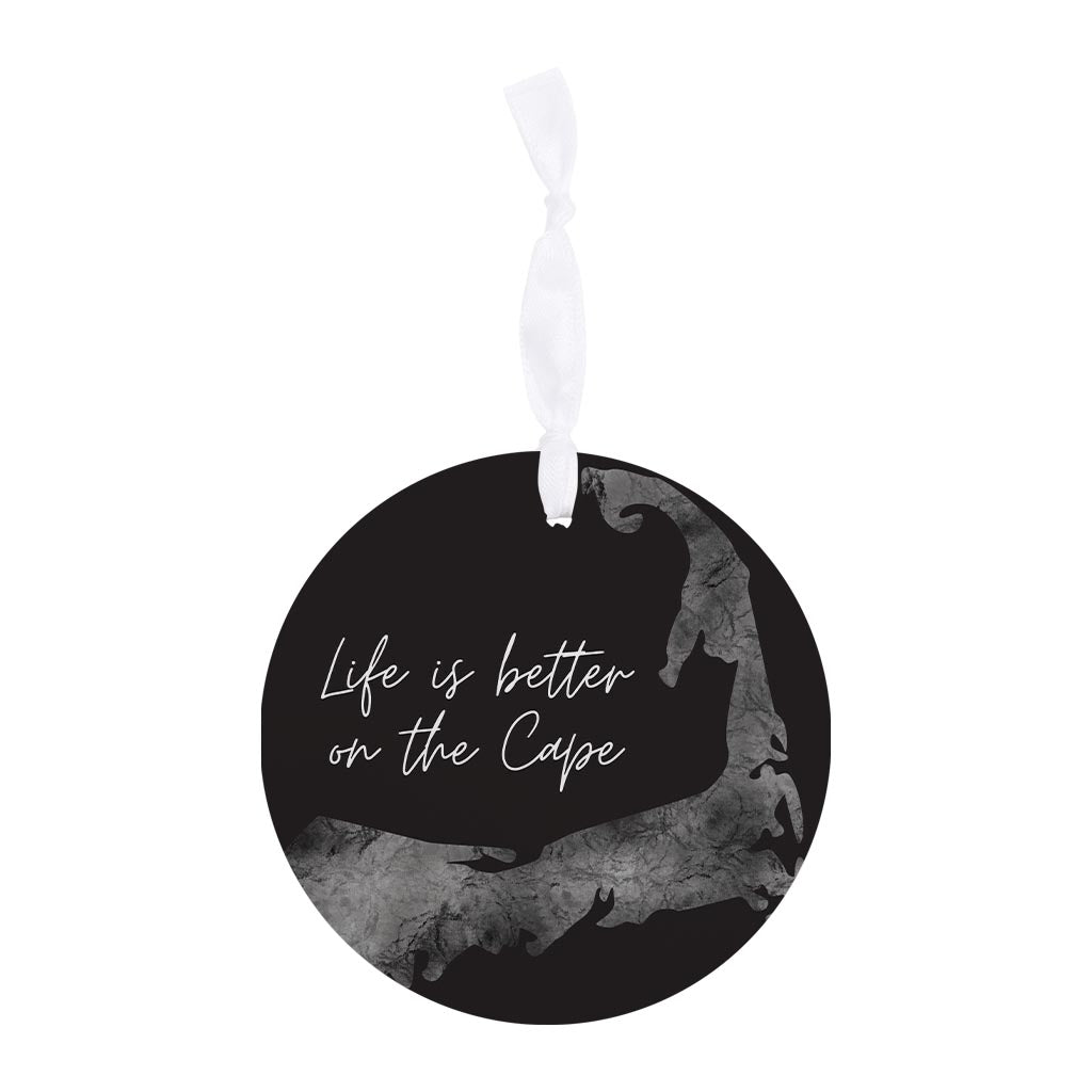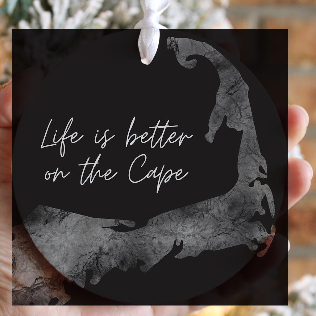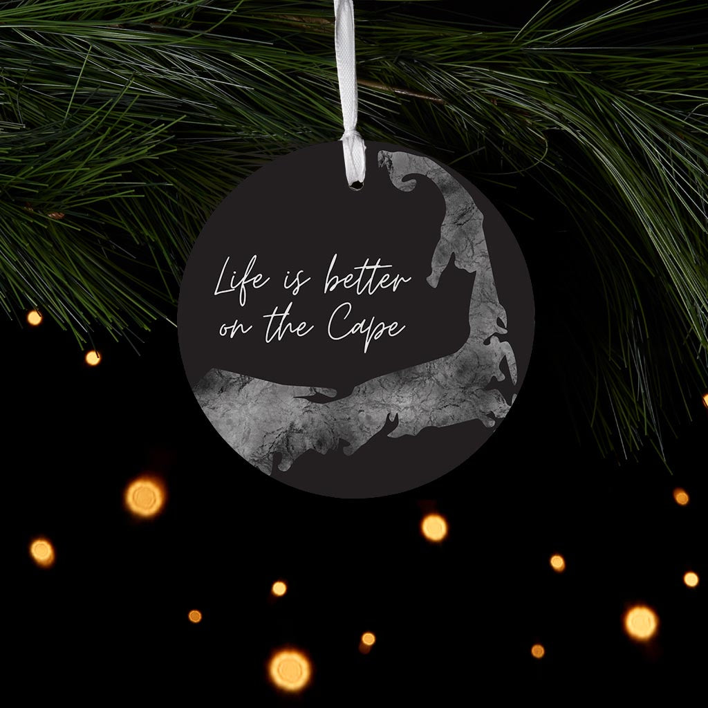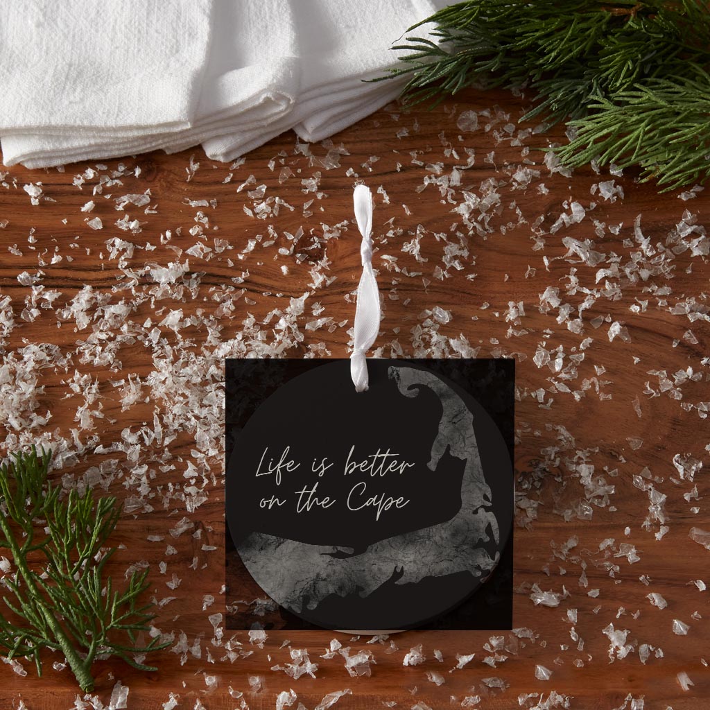 Minimalistic B&W Cape Cod Life Is Better | Wood Ornament | Eaches | Min 6