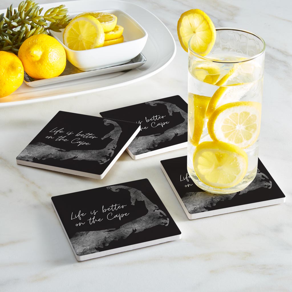 Minimalistic B&W Cape Cod Life Is Better | Absorbent Coasters | Set of 4 | Min 2