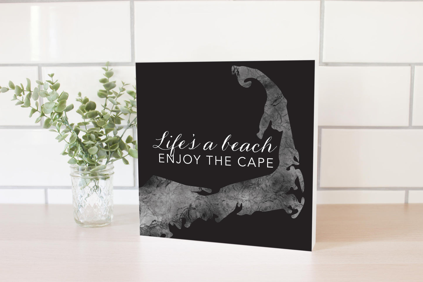 Minimalistic B&W Cape Cod Lifes A Beach | Wood Block | Eaches | Min 2