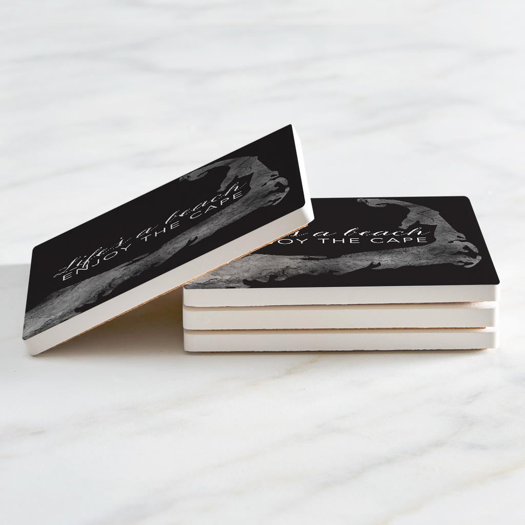 Minimalistic B&W Cape Cod Lifes A Beach | Absorbent Coasters | Set of 4 | Min 2