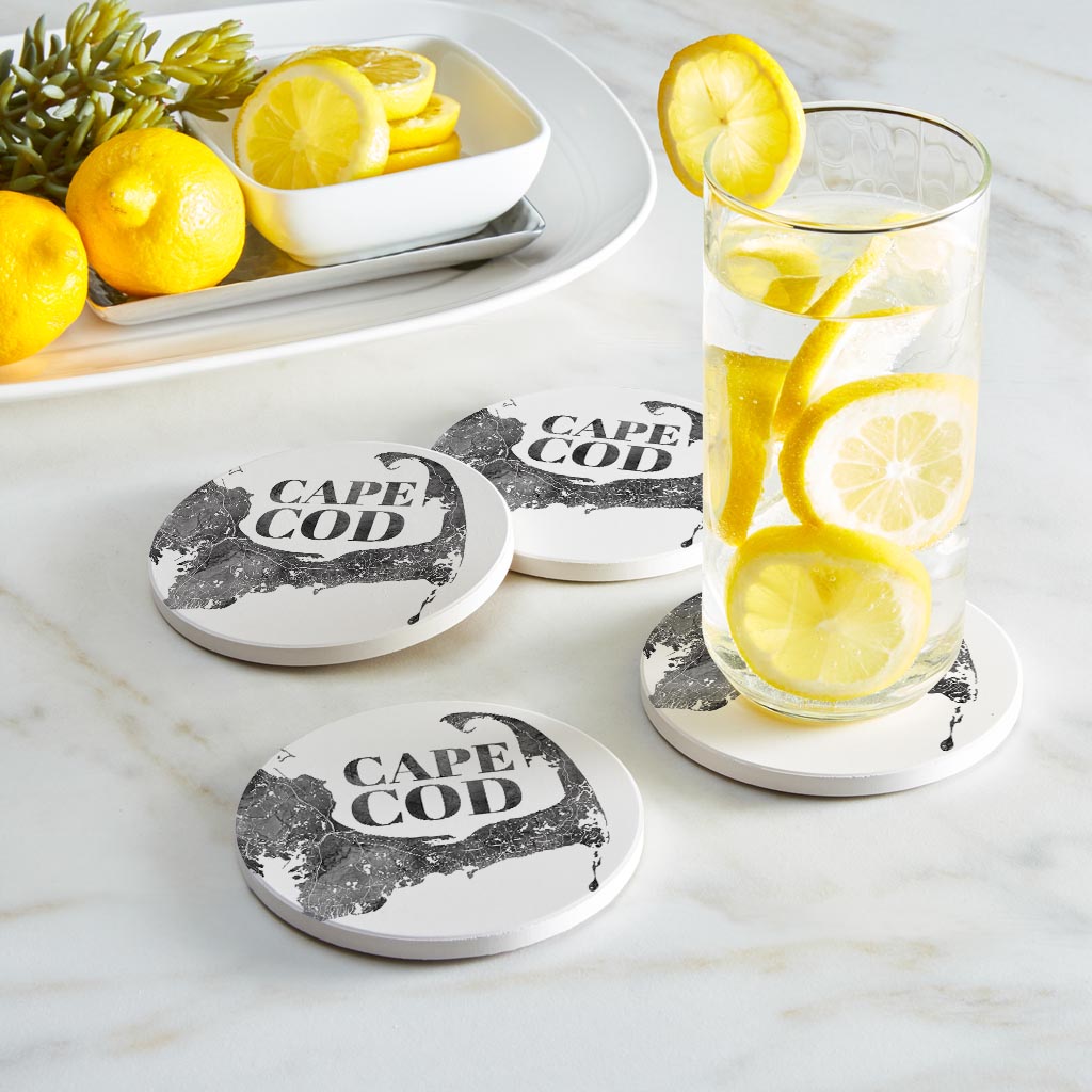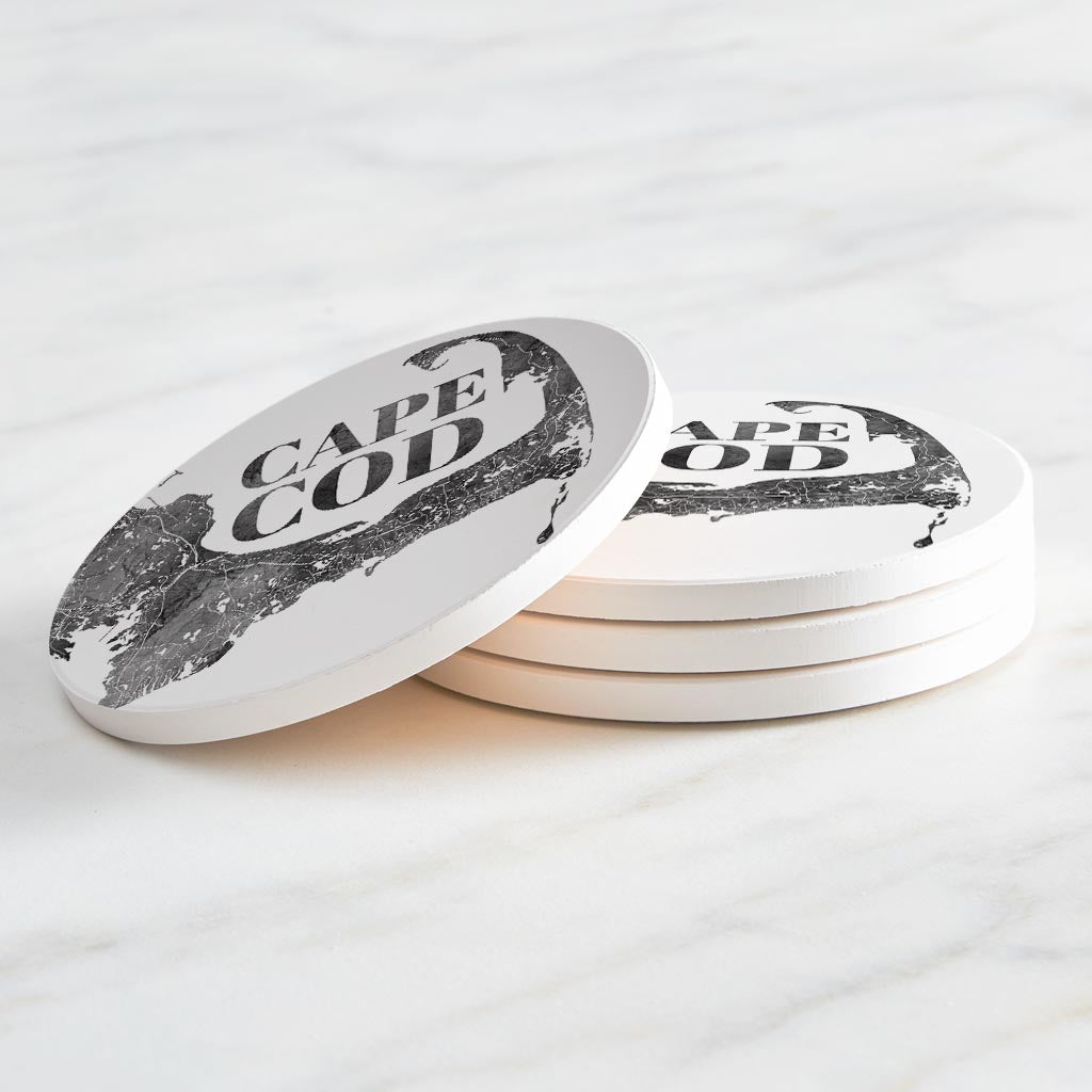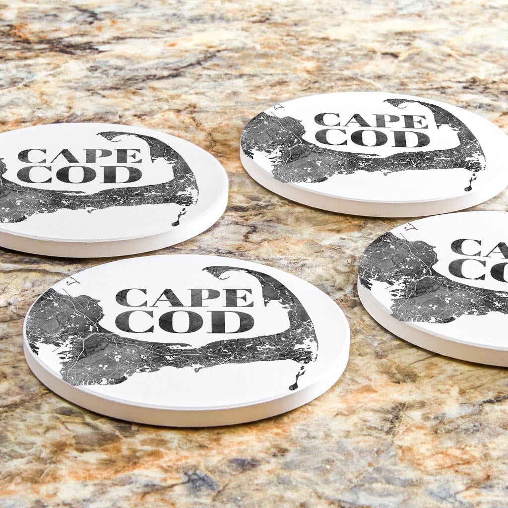 Minimalistic B&W Cape Cod Map| Absorbent Coasters | Set of 4 | Min 2