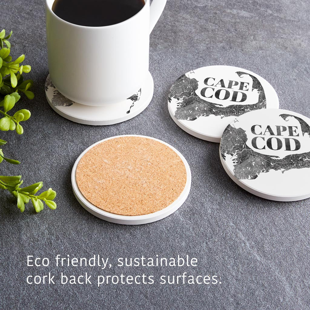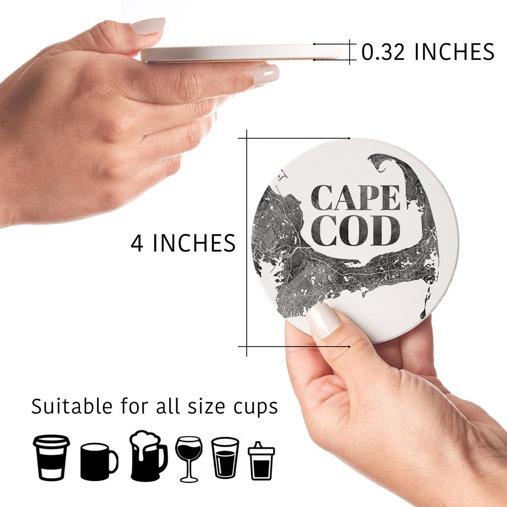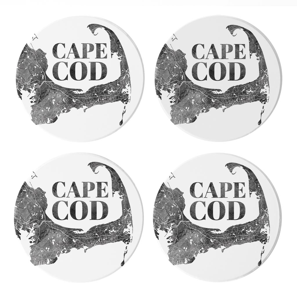 Minimalistic B&W Cape Cod Map| Absorbent Coasters | Set of 4 | Min 2