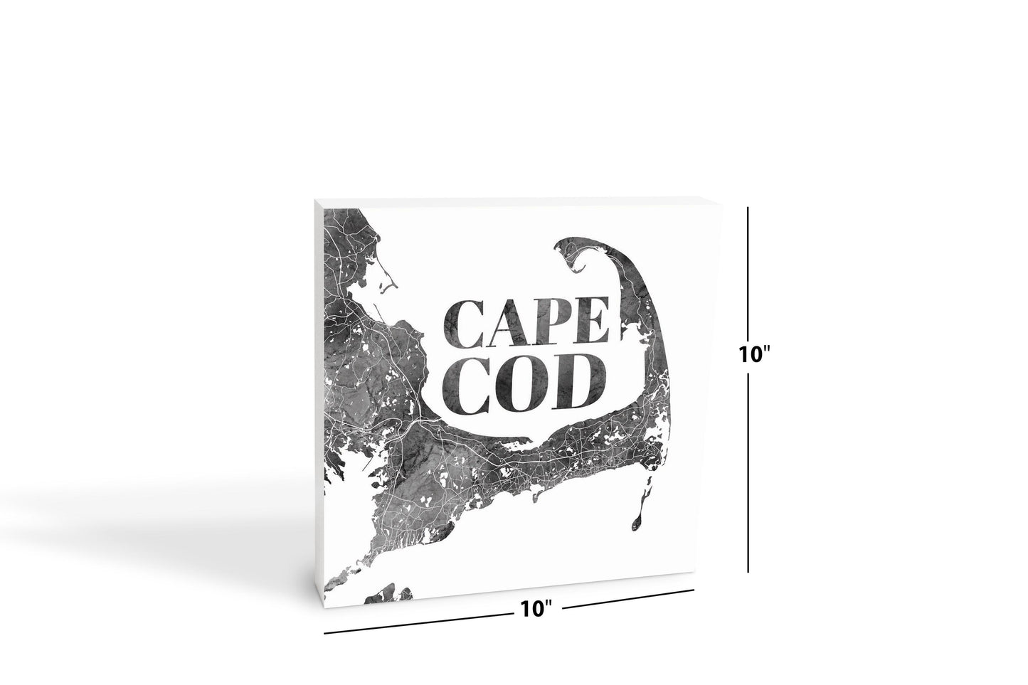 Minimalistic B&W Cape Cod Map | Wood Block | Eaches | Min 2