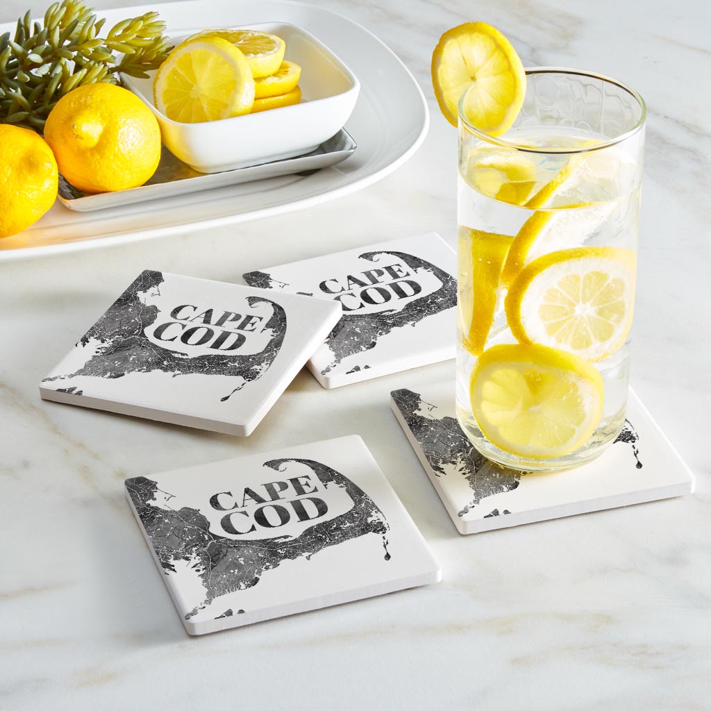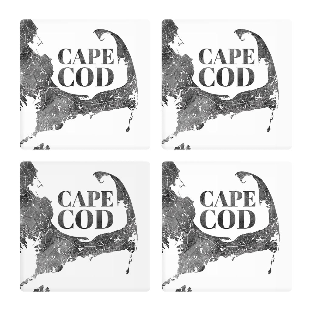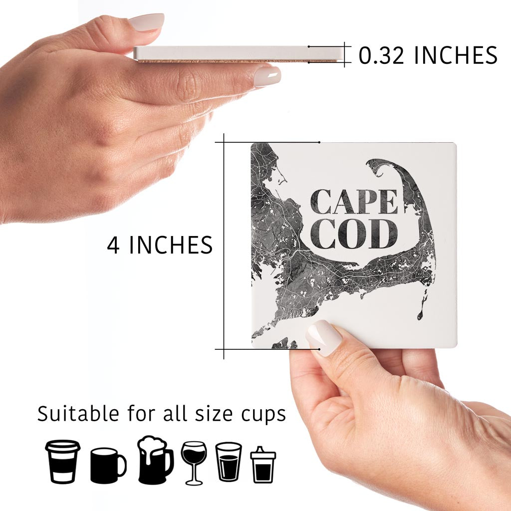 Minimalistic B&W Cape Cod Map | Absorbent Coasters | Set of 4 | Min 2
