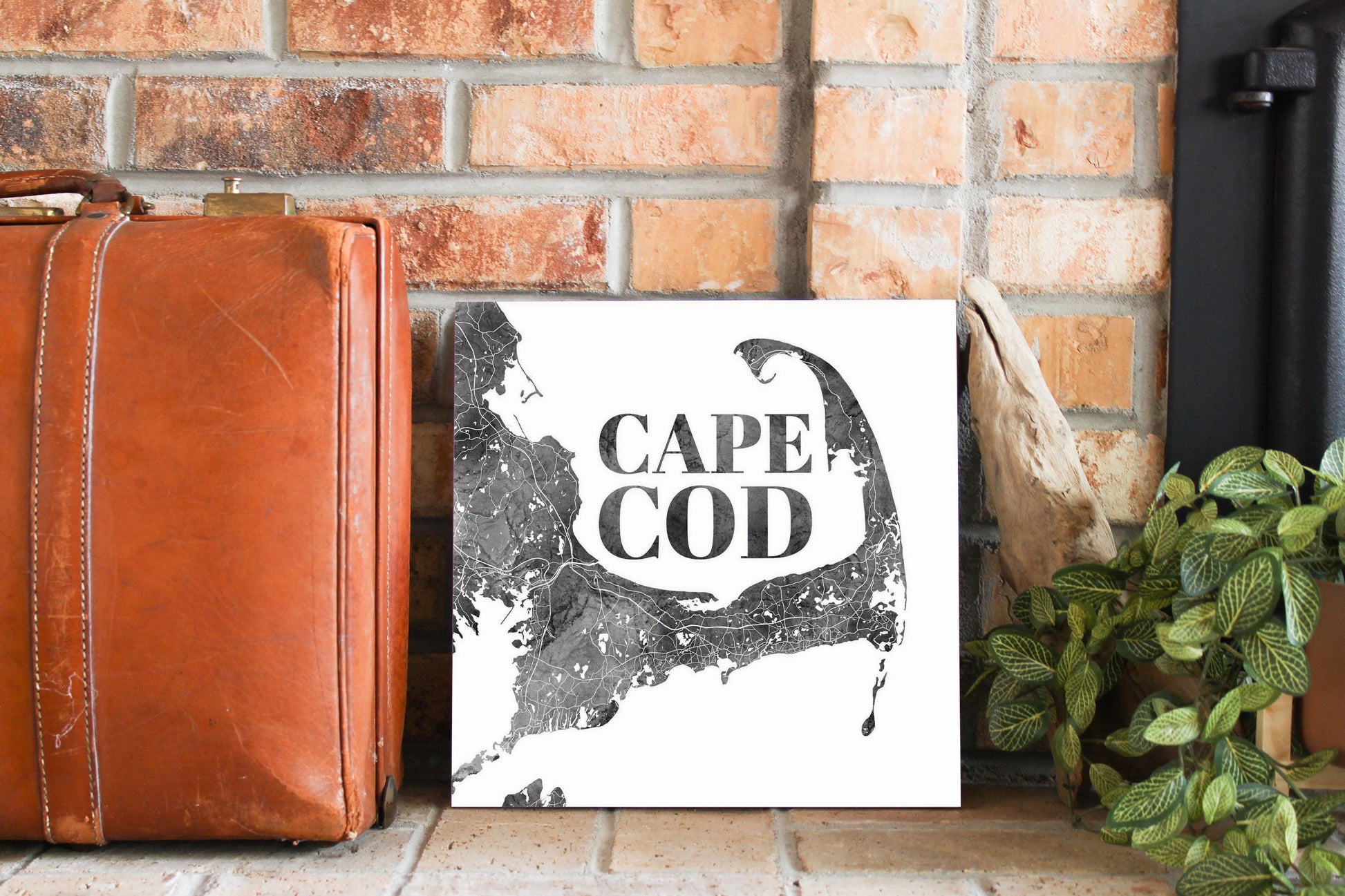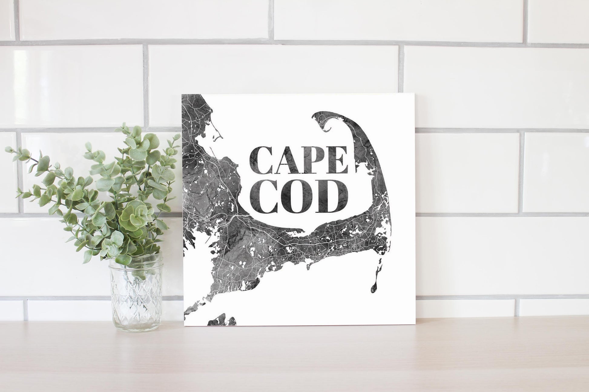 Minimalistic B&W Cape Cod Map | Wood Sign | Eaches | Min 2