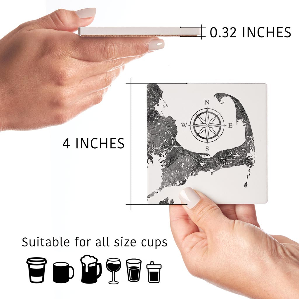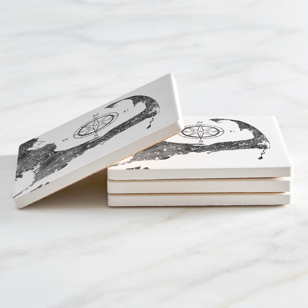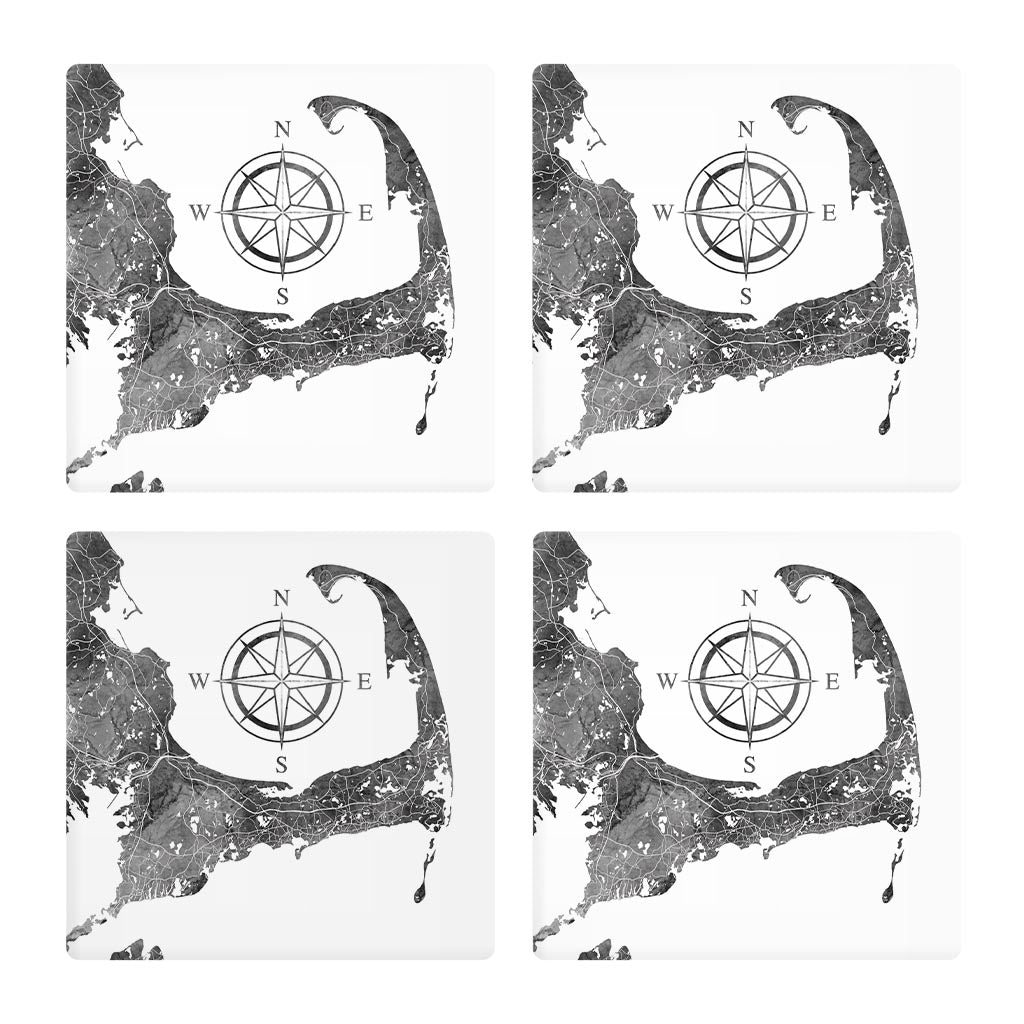 Minimalistic B&W Cape Cod Map With Compass | Absorbent Coasters | Set of 4 | Min 2