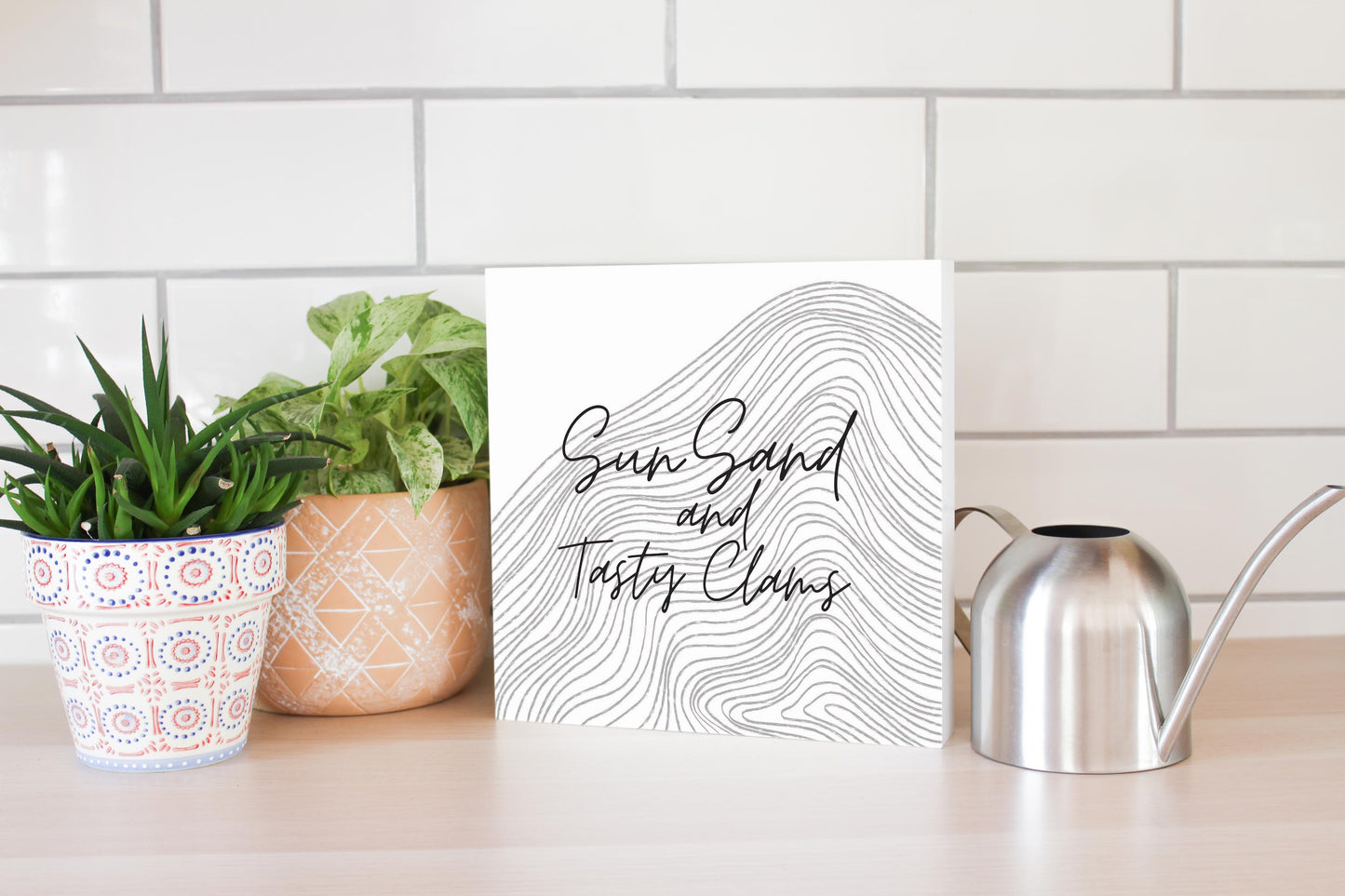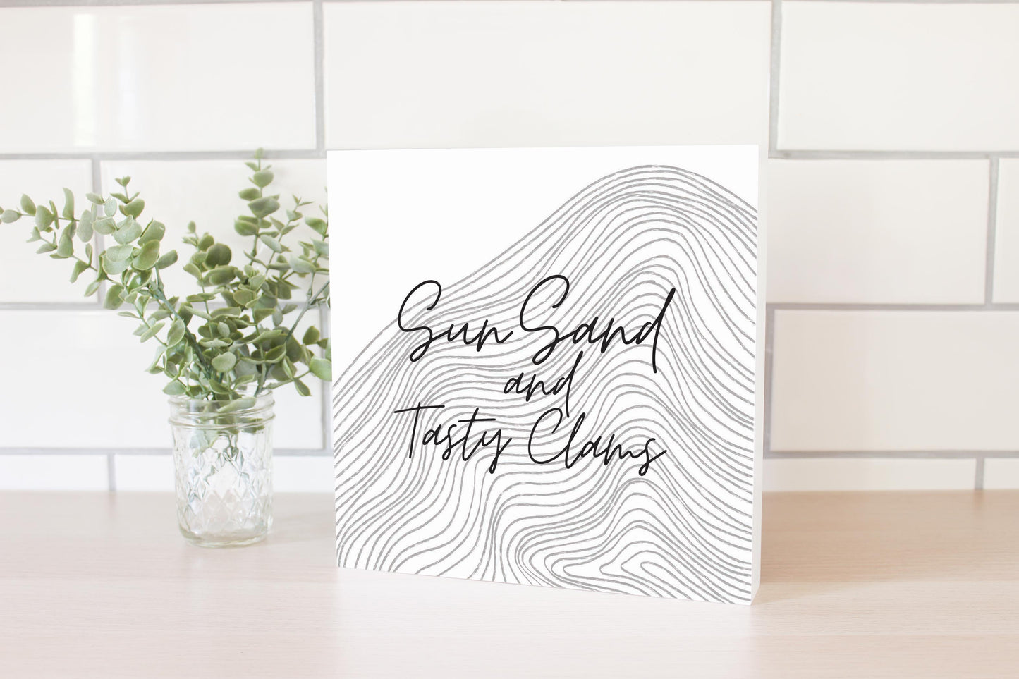 Minimalistic B&W Cape Cod Sun Sand Tasty Clams | Wood Block | Eaches | Min 2