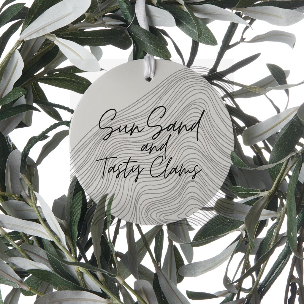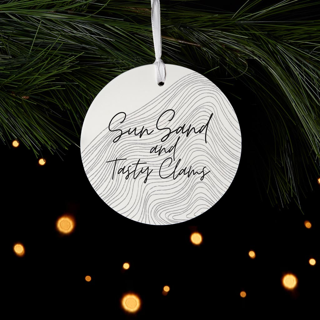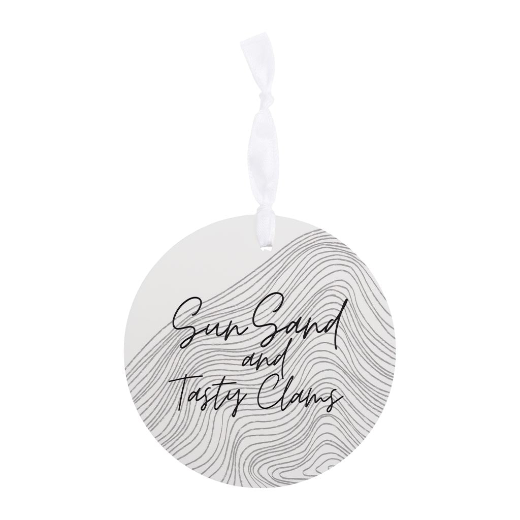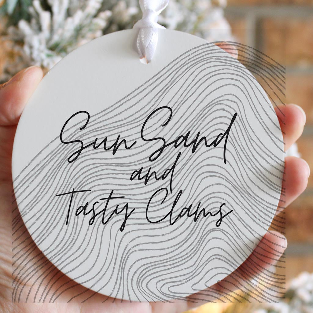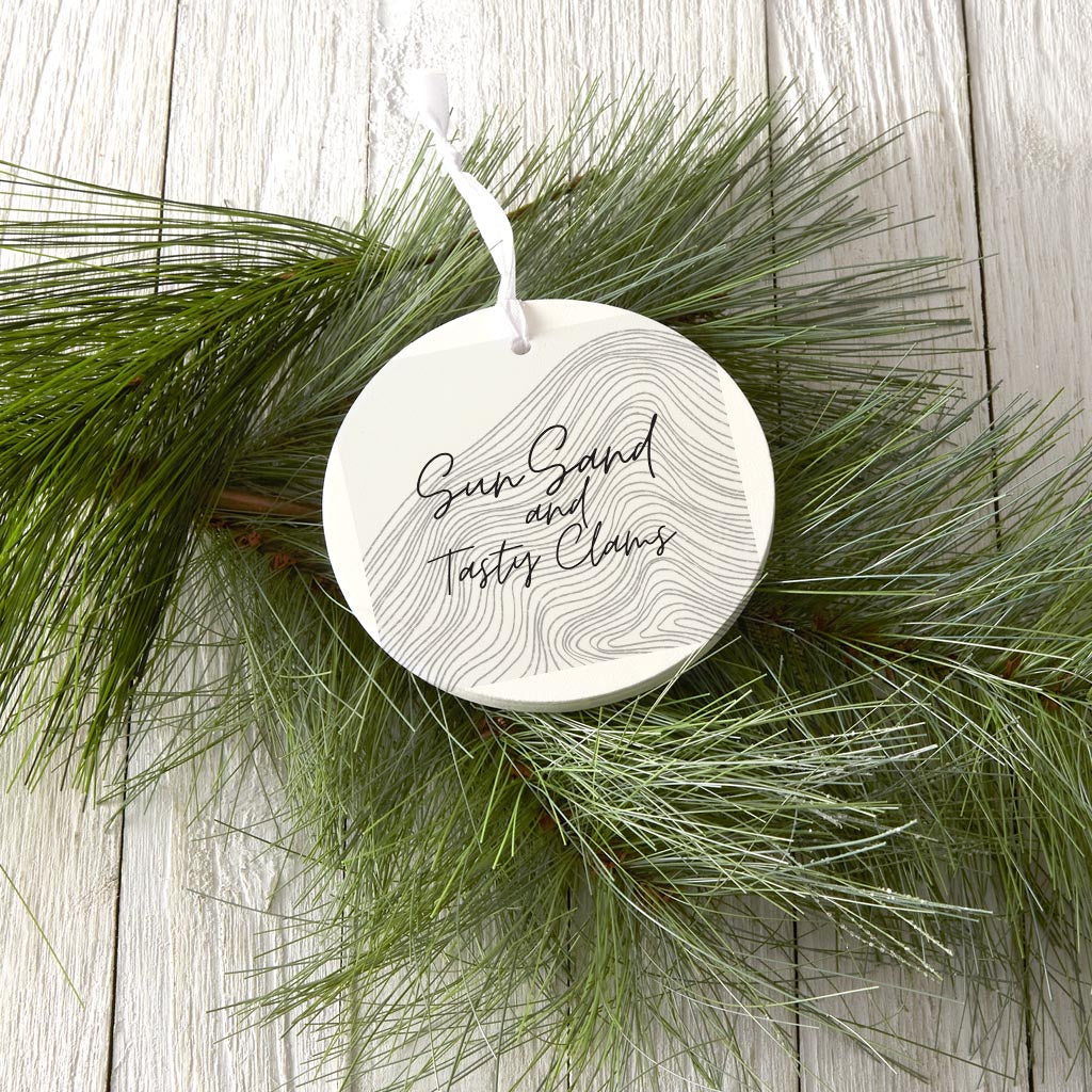 Minimalistic B&W Cape Cod Sun Sand Tasty Clams | Wood Ornament | Eaches | Min 6