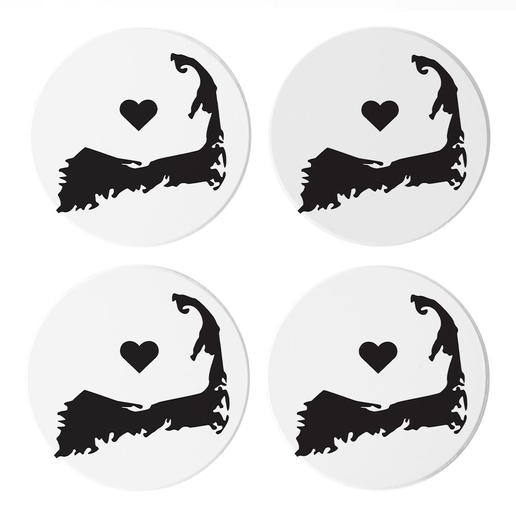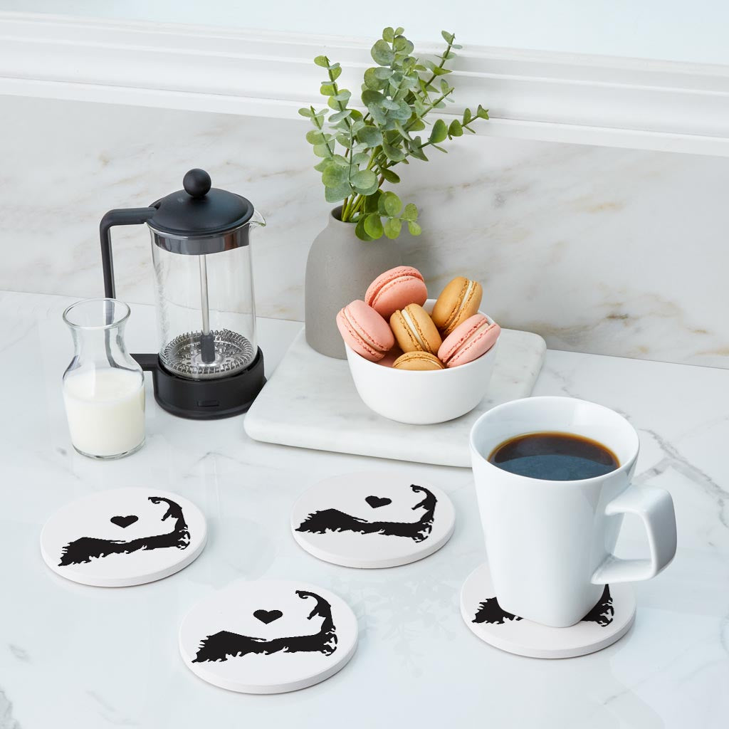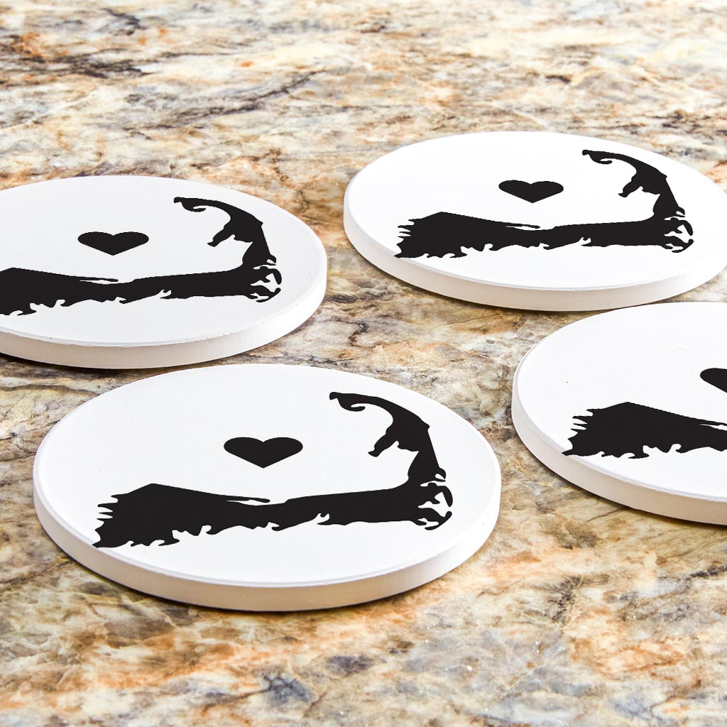 Minimalistic B&W Cape Cod With Heart | Absorbent Coasters | Set of 4 | Min 2